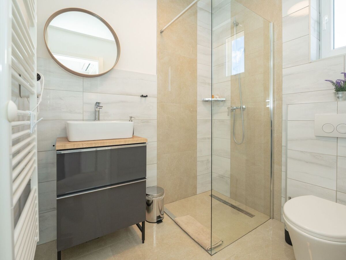 The villa has a total of four en-suite bathrooms, all equipped with showers.