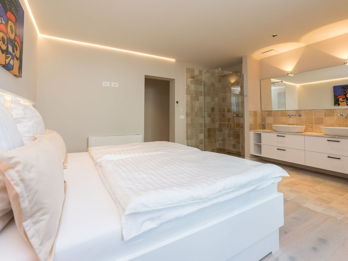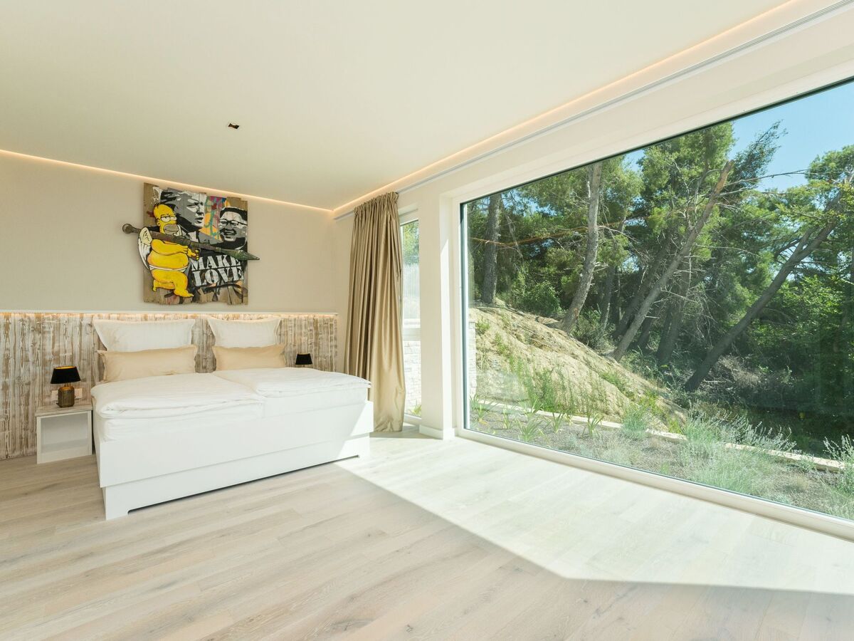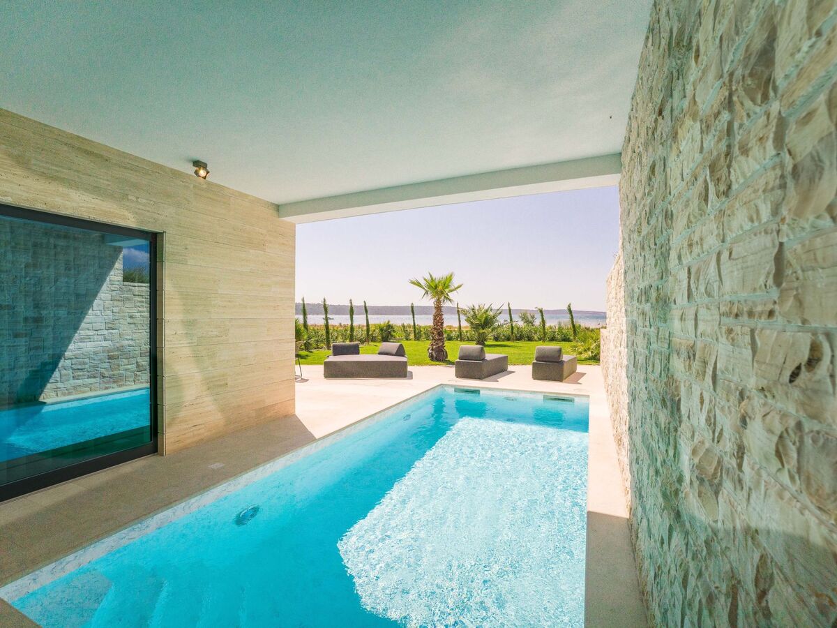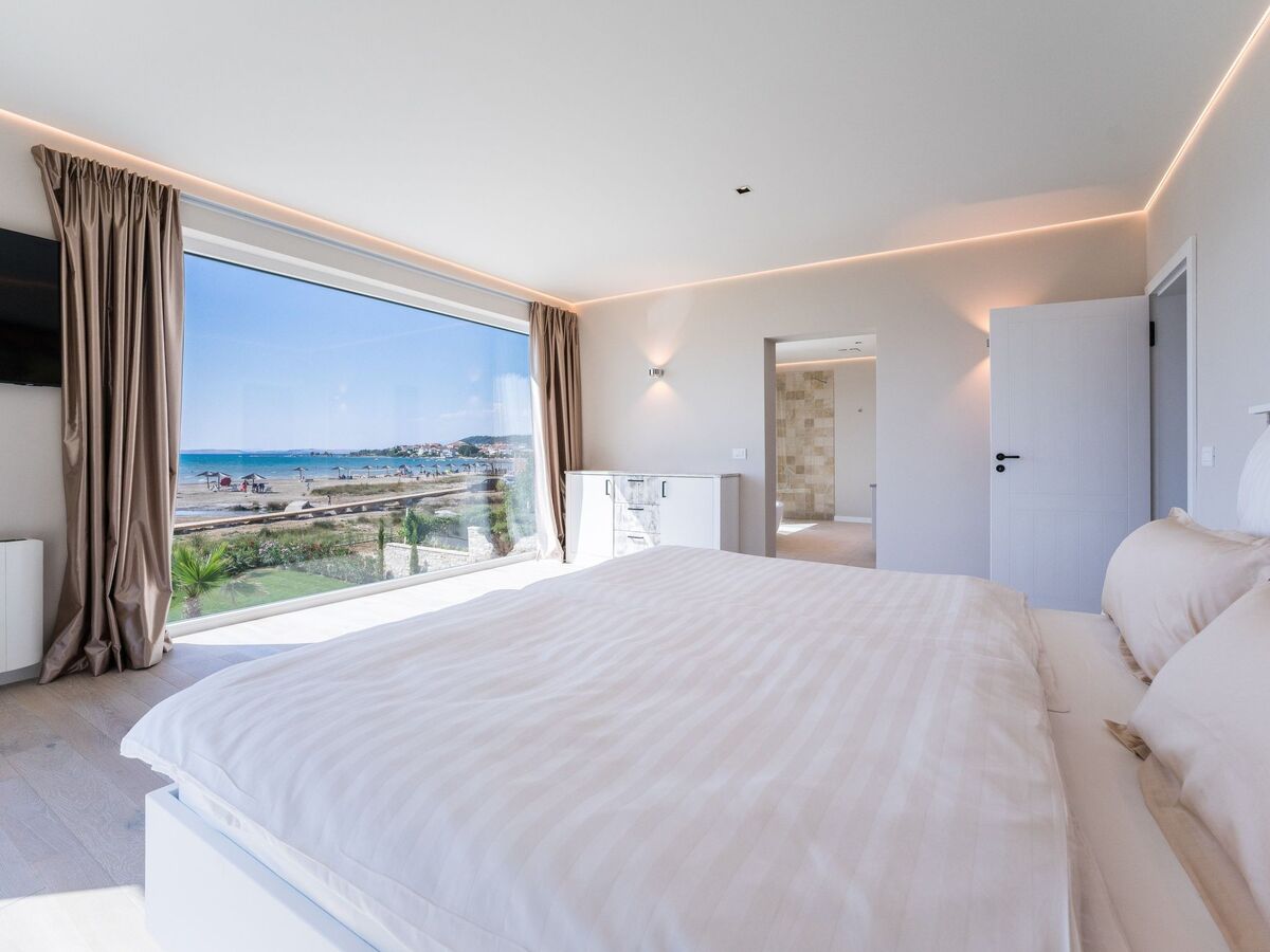 On the first floor, in addition to a wellness area with sauna, whirlpool, outdoor shower and luxurious lounge furniture, there is also an outdoor kitchen with a dining area for 10 people; from there (9 metres high) you have a unique view of the Velebit Mountains and the sea.