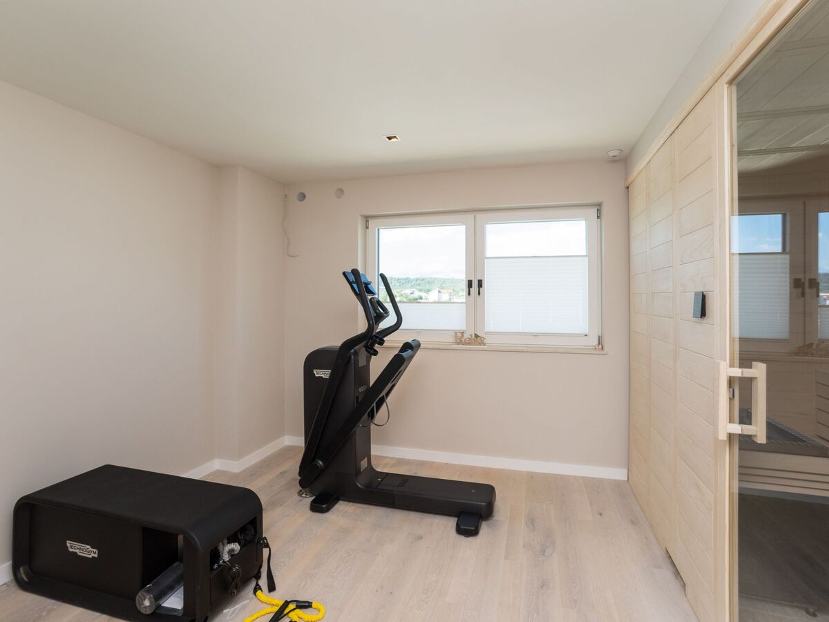 The fitness room/spa is equipped with modern Technogym sports equipment.