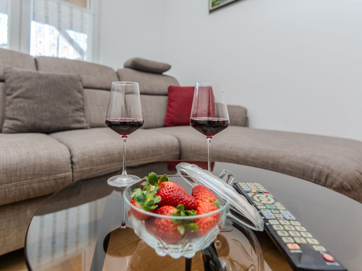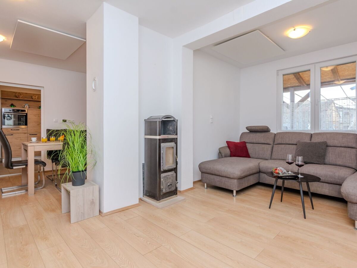 L'espace de vie de 70 m² s'étend sur le rez-de-chaussée et se compose d'un salon, d'une cuisine, d'un coin repas, d'une chambre à coucher avec un lit double et d'une chambre à coucher avec deux lits simples ainsi que d'une salle de bain avec douche.