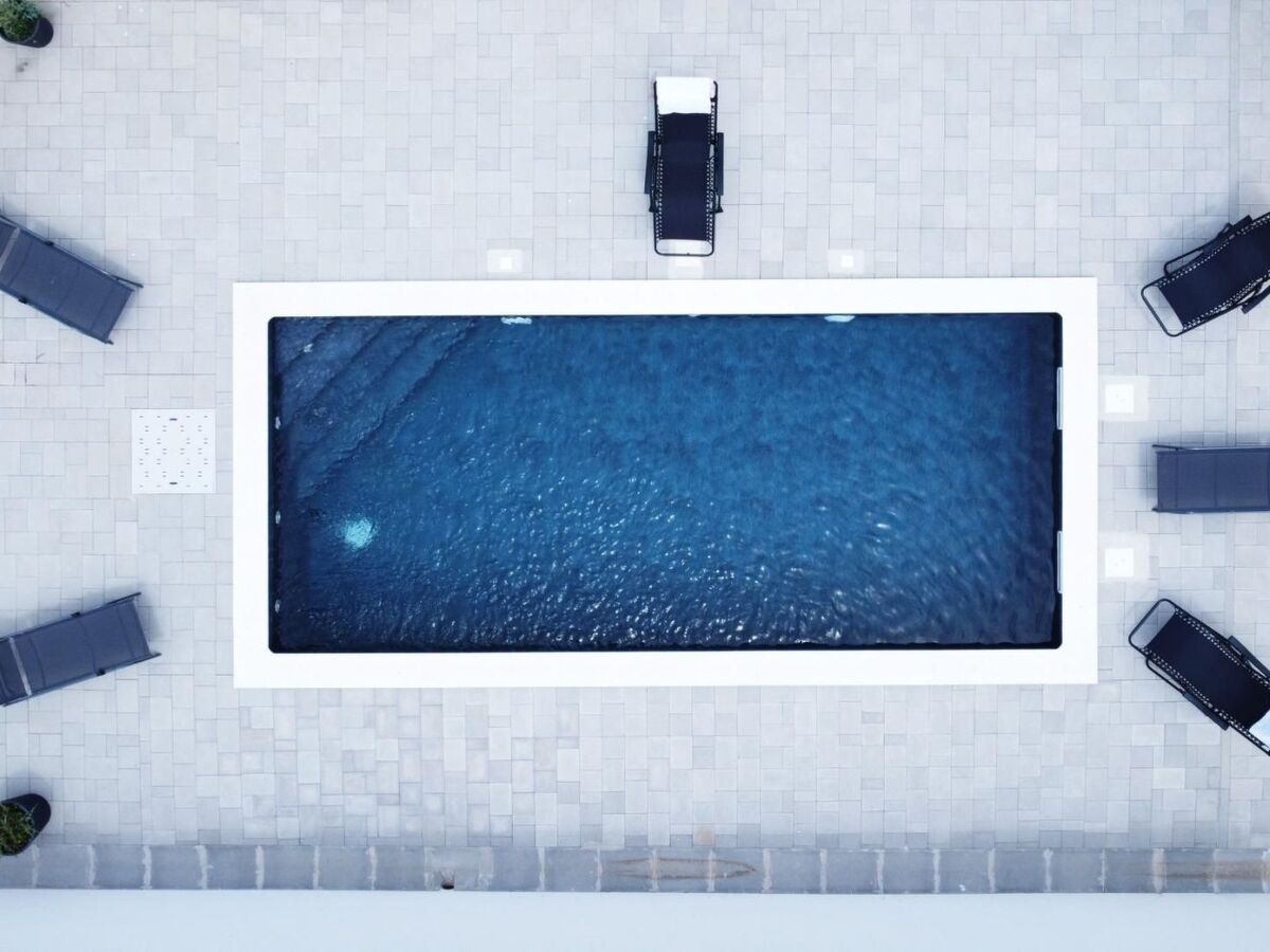 The property has a 40 m² covered terrace with seating and sun loungers.
