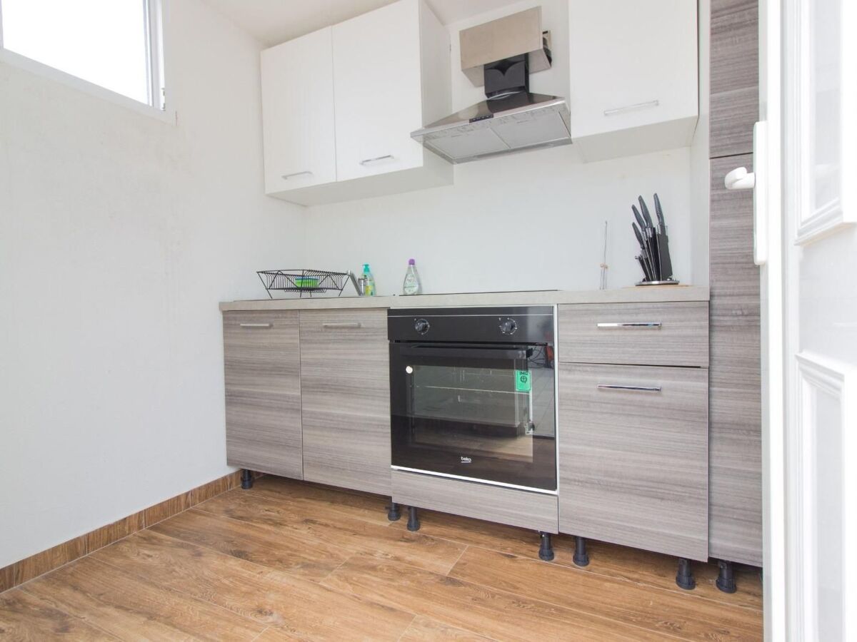 The 68 m² living space extends over the ground floor and is divided into a fully equipped kitchen with dining area, a bedroom with a double bed and two bedrooms with two single beds.