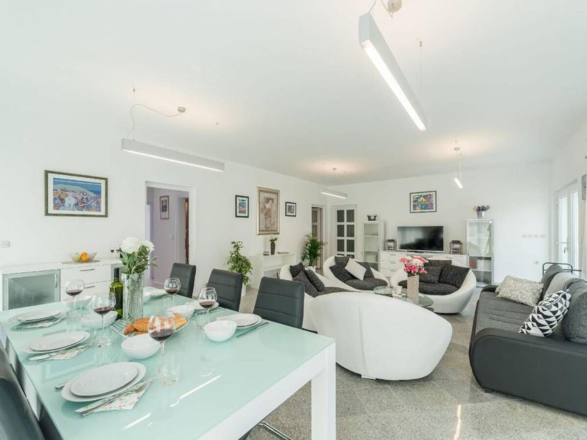 This modern villa is located in the town of Sabunike, in a quiet area surrounded by greenery, just 150 meters from the beautiful sandy beach.