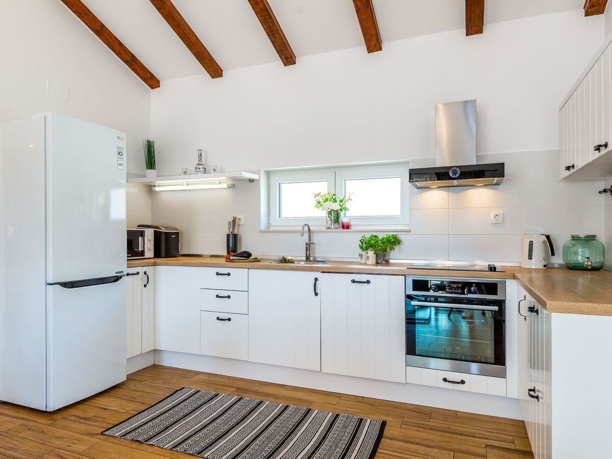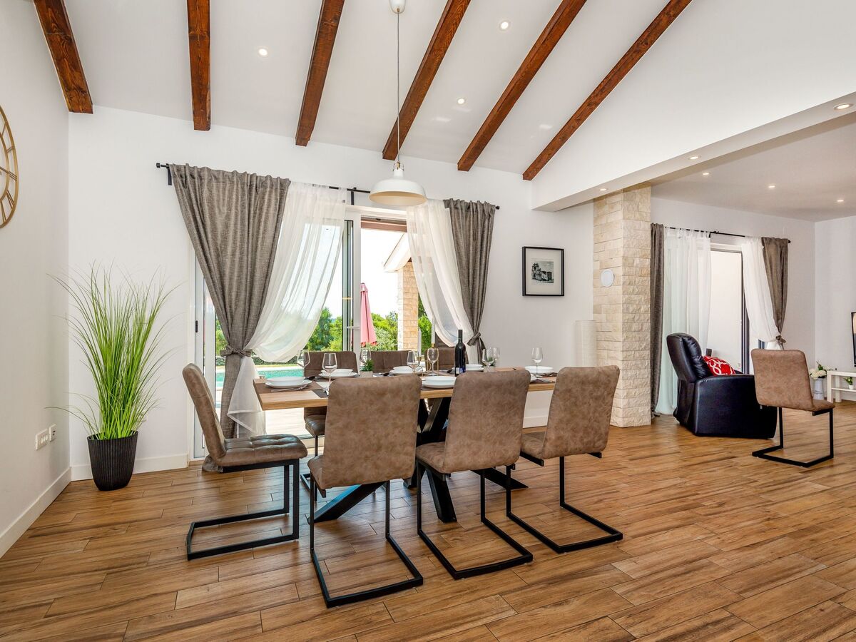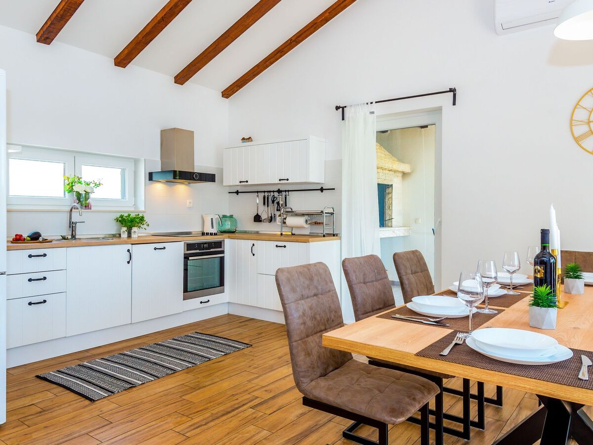 On the ground floor of the villa there is a large, modern kitchen and a dining room with seating for eight.