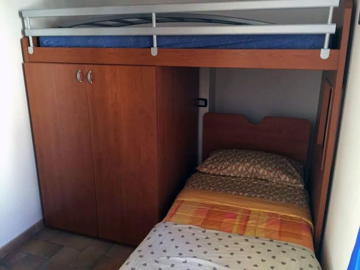 The sleeping area, located on the upper floor, offers a double bedroom and a bedroom with two single bunk beds, as well as a main bathroom with shower, ensuring rest and privacy for all guests.