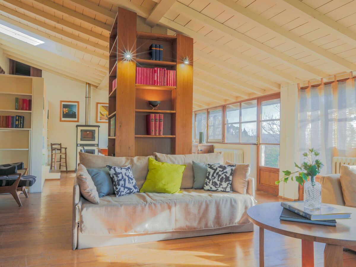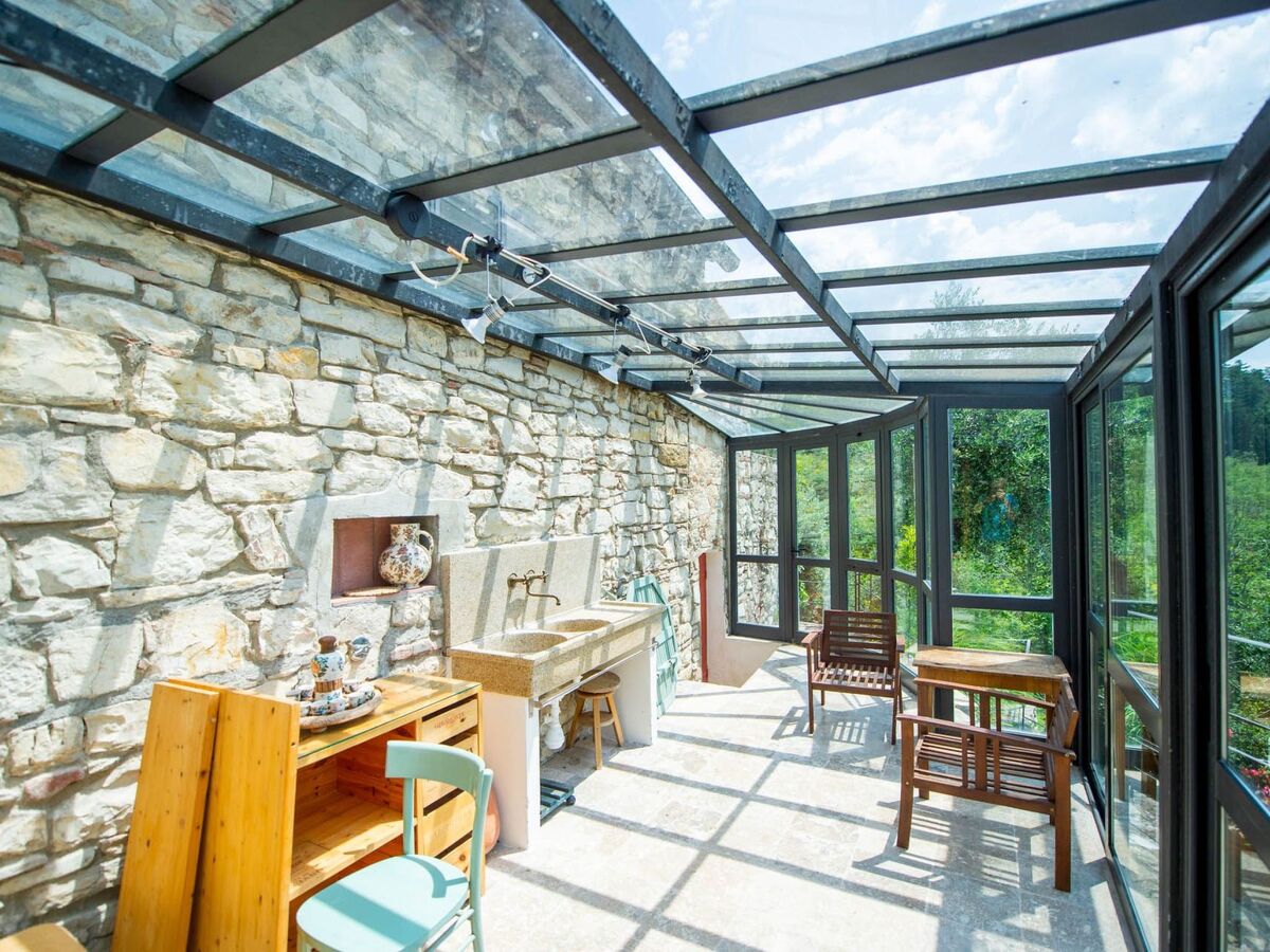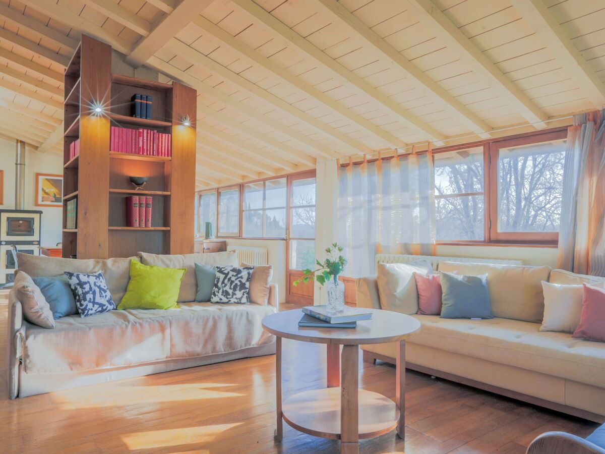 La première unité comprend également une cheminée, une grande bibliothèque, un canapé-lit supplémentaire et enfin une magnifique véranda protégée par des baies vitrées donnant sur le jardin.