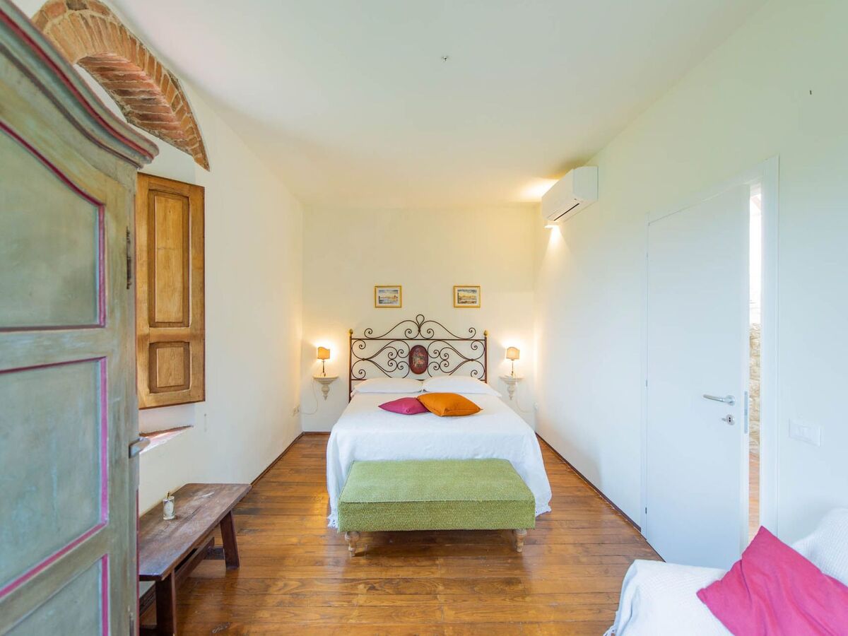 Aujourd'hui, c'est une charmante résidence de luxe de 500 mètres carrés, entourée du paysage typique de la campagne toscane, avec une succession de collines couvertes de vignobles et d'oliveraies.