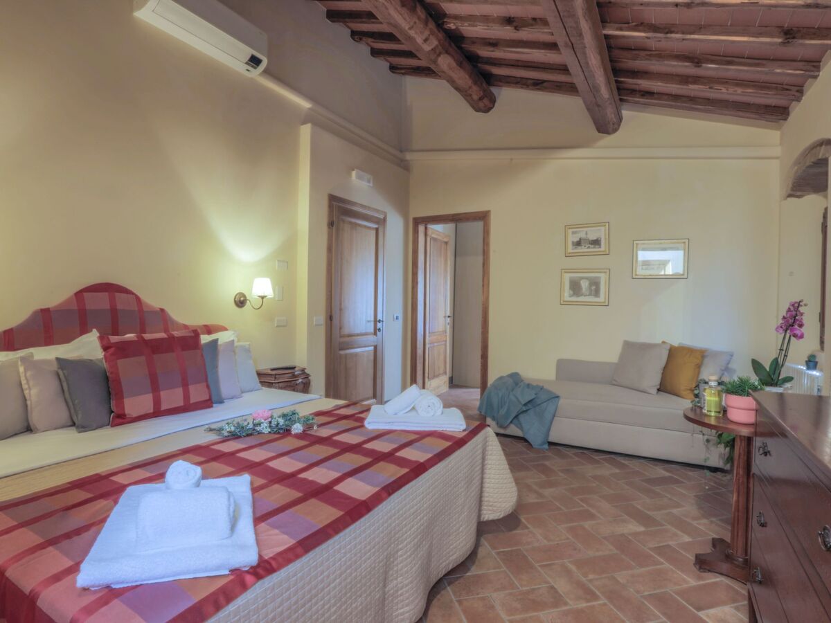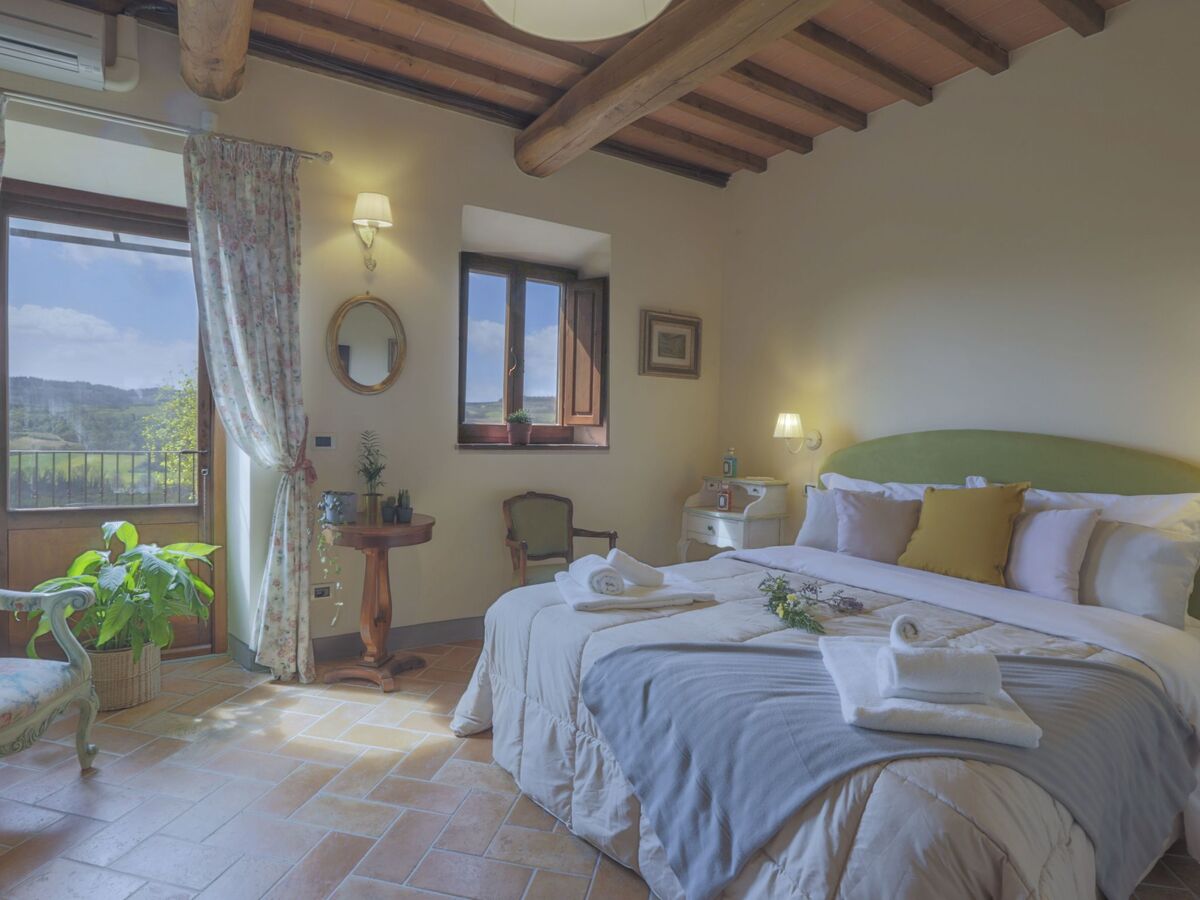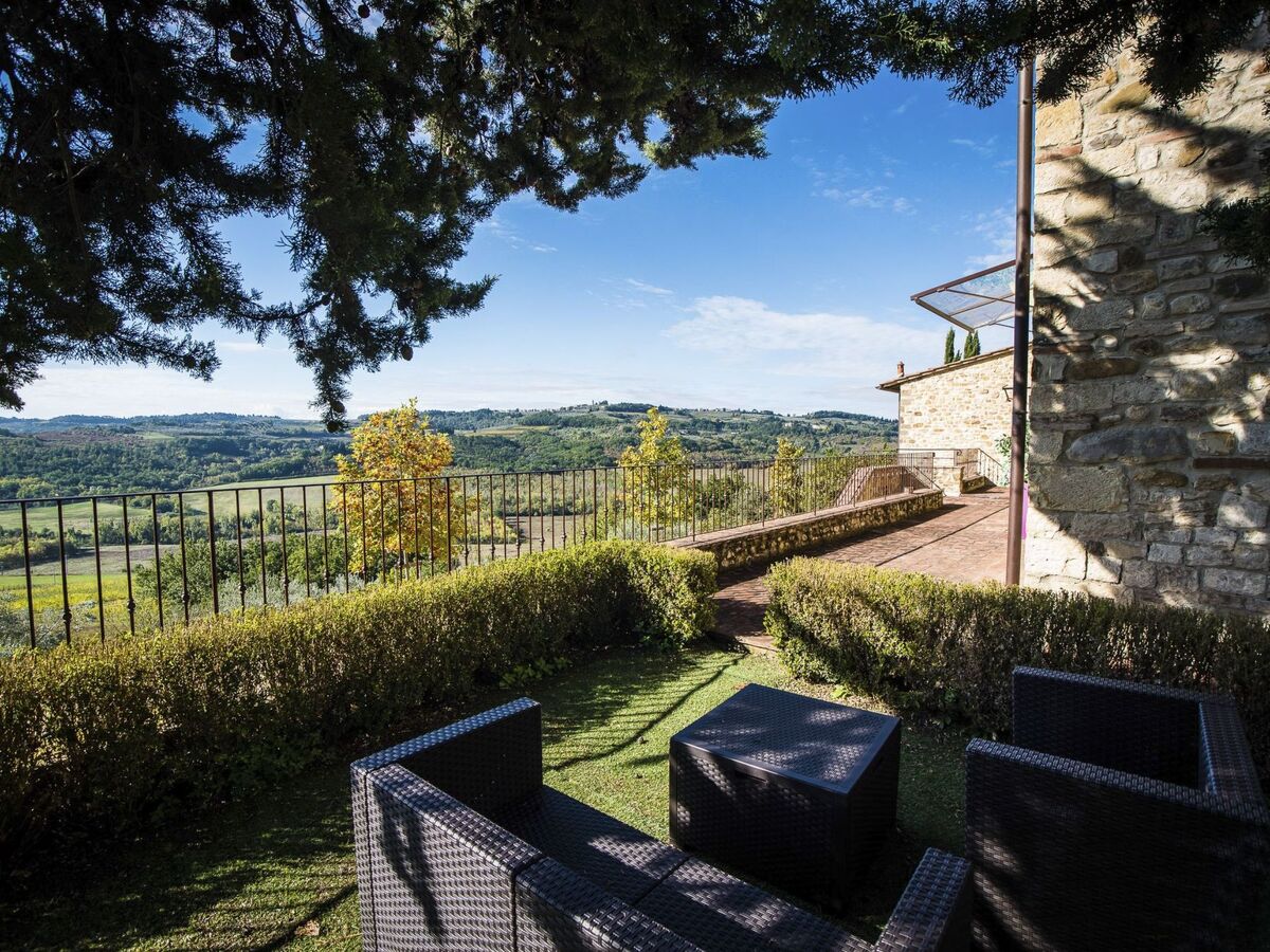 À l'extérieur, vous pourrez profiter de grands espaces verts, d'une terrasse panoramique avec vue sur les collines du Chianti, d'une salle à manger extérieure, d'un espace de relaxation, d'un solarium et de l'ouverture saisonnière de la piscine et du jacuzzi de mai à octobre.