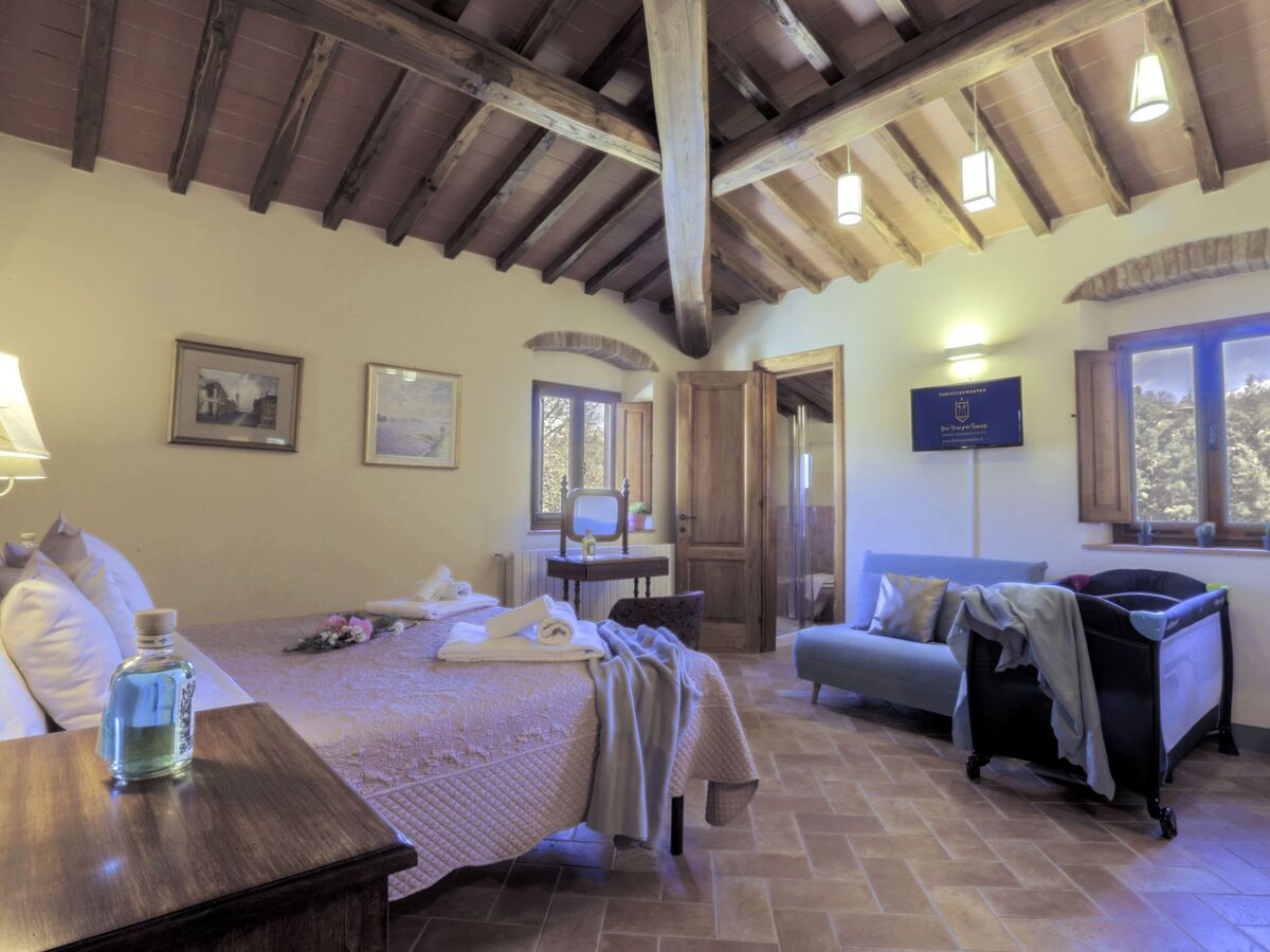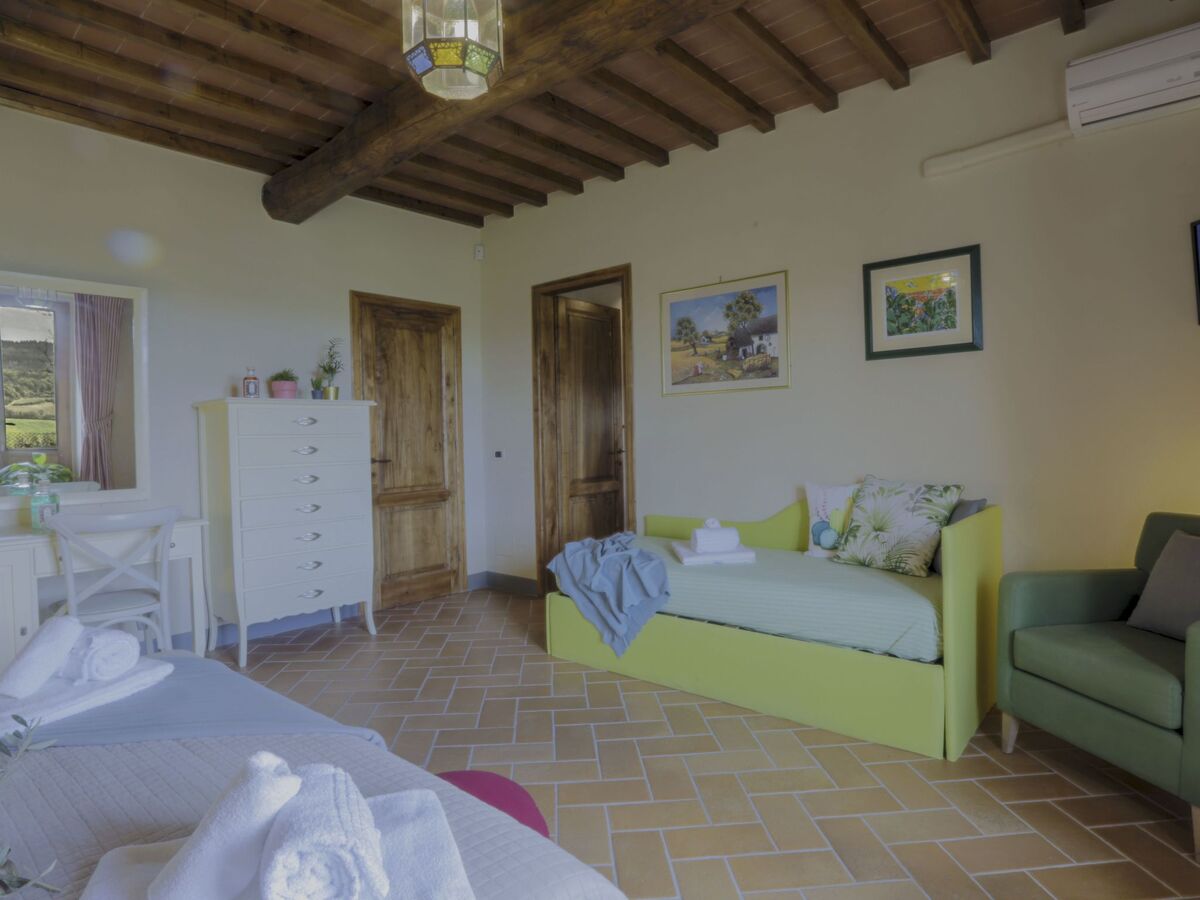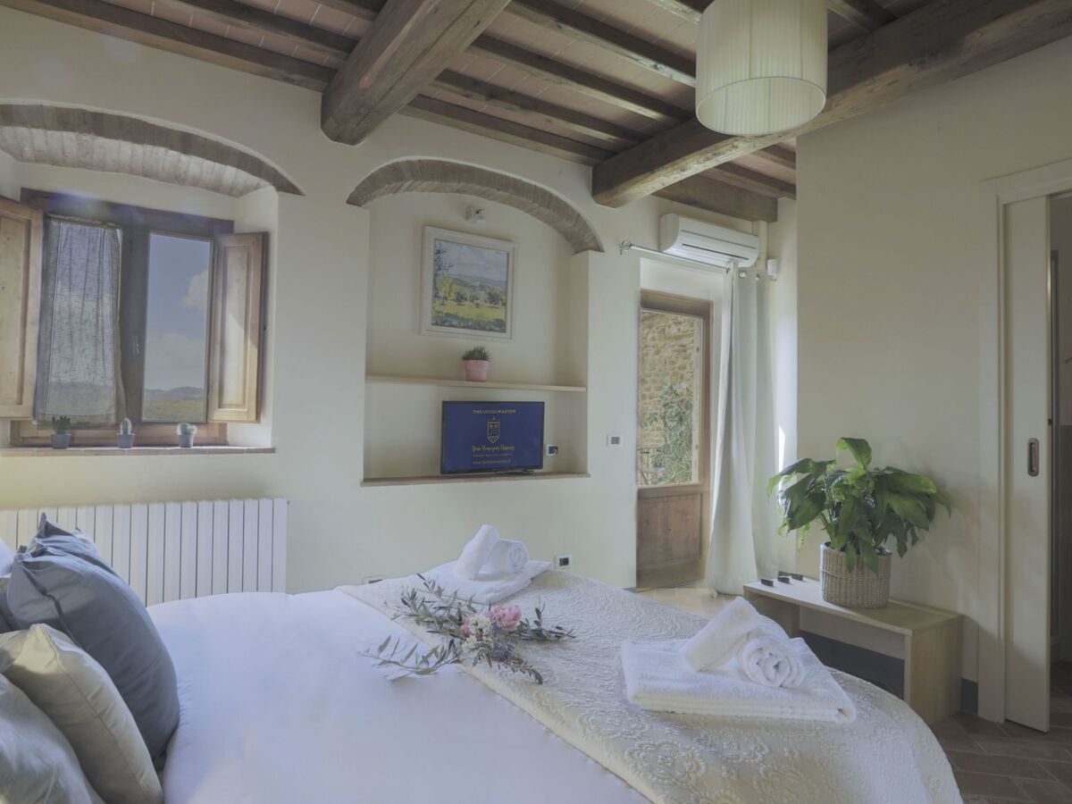 À l'extérieur, vous pourrez profiter de grands espaces verts, d'une terrasse panoramique avec vue sur les collines du Chianti, d'une salle à manger extérieure, d'un espace de relaxation, d'un solarium et de l'ouverture saisonnière de la piscine et du jacuzzi de mai à octobre.