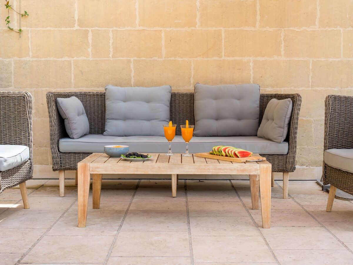 On the opposite side of the courtyard is the annex with two other bedrooms, which share a bathroom with shower.