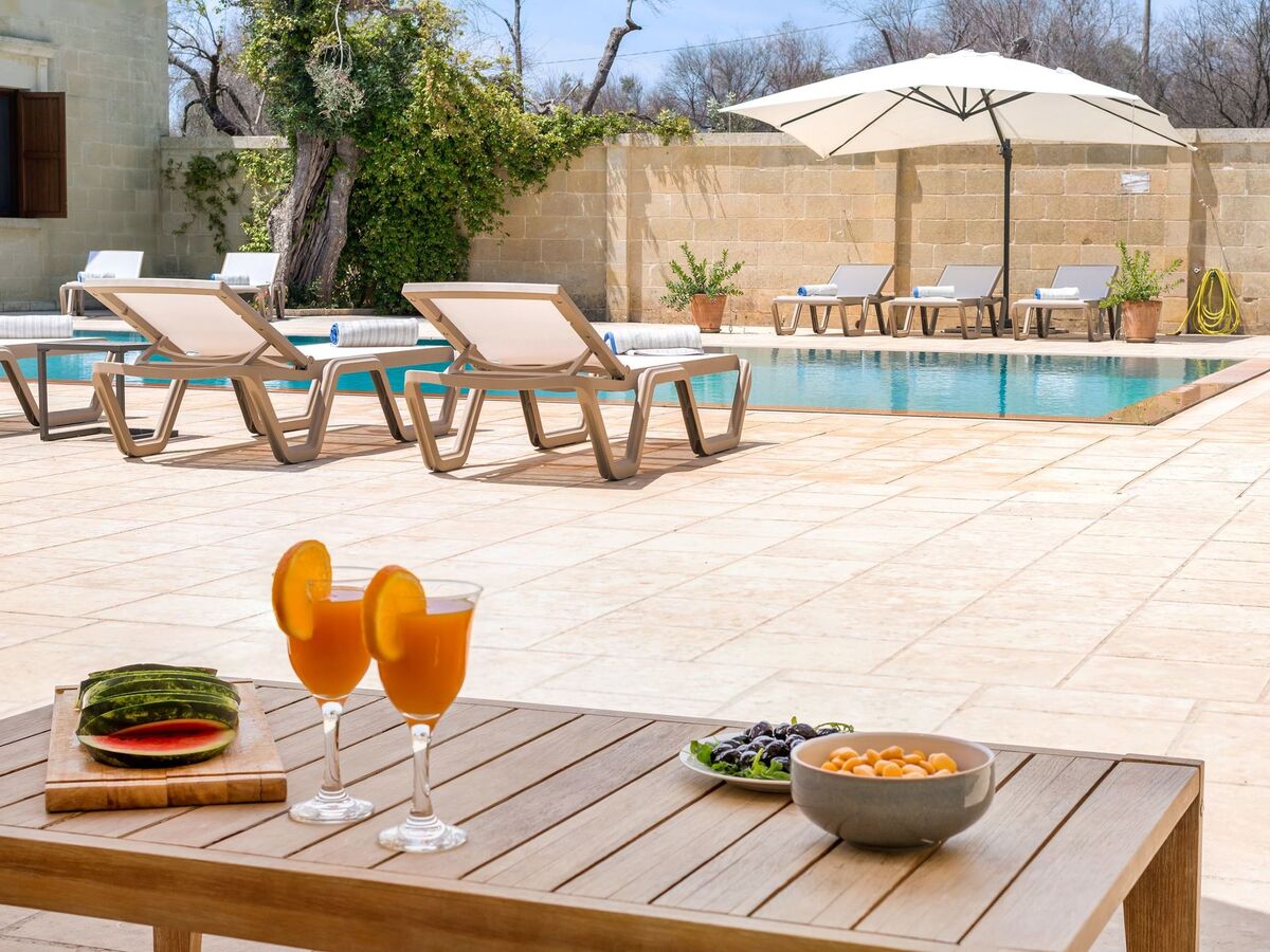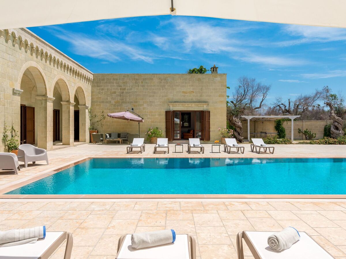 The central patio houses a large swimming pool (10x5 meters) is entirely paved and all the rooms overlook it through French windows.