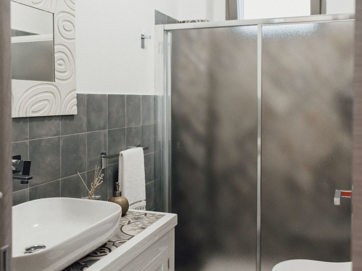 2 shower rooms, bordering the bedrooms, the latter equipped with tablecloths, hair dryer, bidet, toilet, hanging washbasin; Access is from the living room/kitchen, where the glass window that opens onto the garden and the sea stands out;