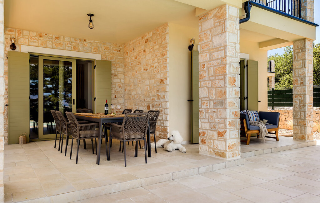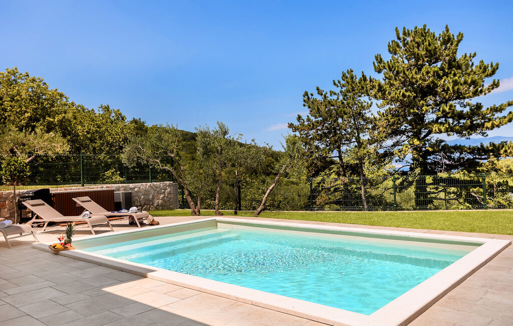 Passez du temps sur le balcon et laissez votre regard se poser sur la mer et le paysage environnant. À l'extérieur, vous pouvez profiter d'heures rafraîchissantes dans la piscine, puis vous détendre sur les chaises longues dans un environnement calme et verdoyant. Profitez de la terrasse pour passer des moments tranquilles en plein air ou pour boire un verre de vin au coucher du soleil.