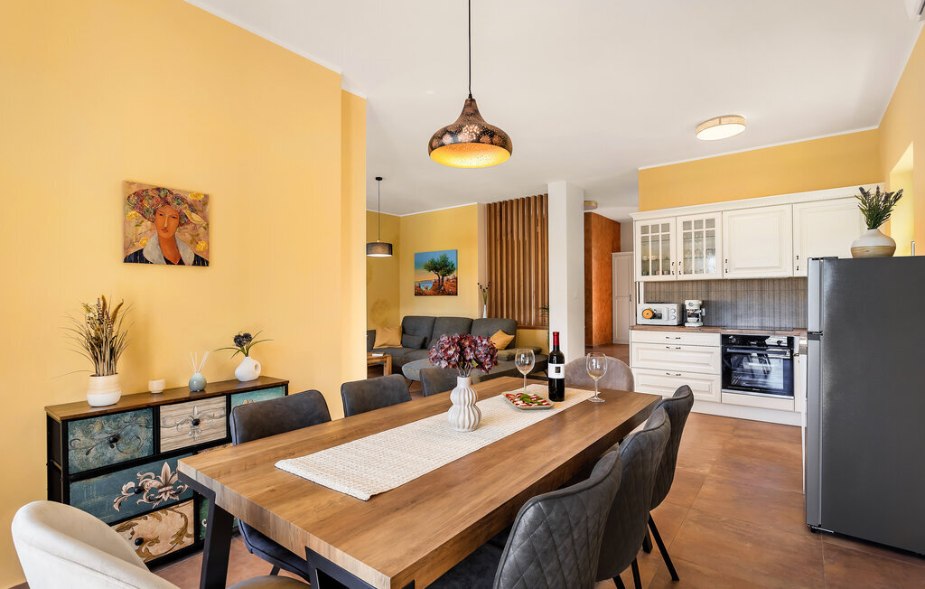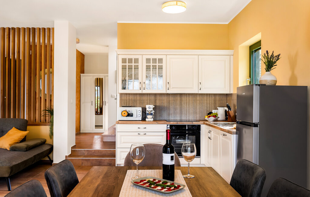Passez des heures de détente dans l'espace extérieur aménagé avec soin et profitez de la vue sur la mer et la vieille ville historique de Vrbnik. Rafraîchissez-vous dans la piscine extérieure éclairée ou détendez-vous sur les chaises longues. Utilisez le barbecue pour des repas conviviaux et prenez-les sur la terrasse couverte. Sur le balcon, vous pouvez terminer la journée en admirant le coucher de soleil sur la baie de Kvarner.
