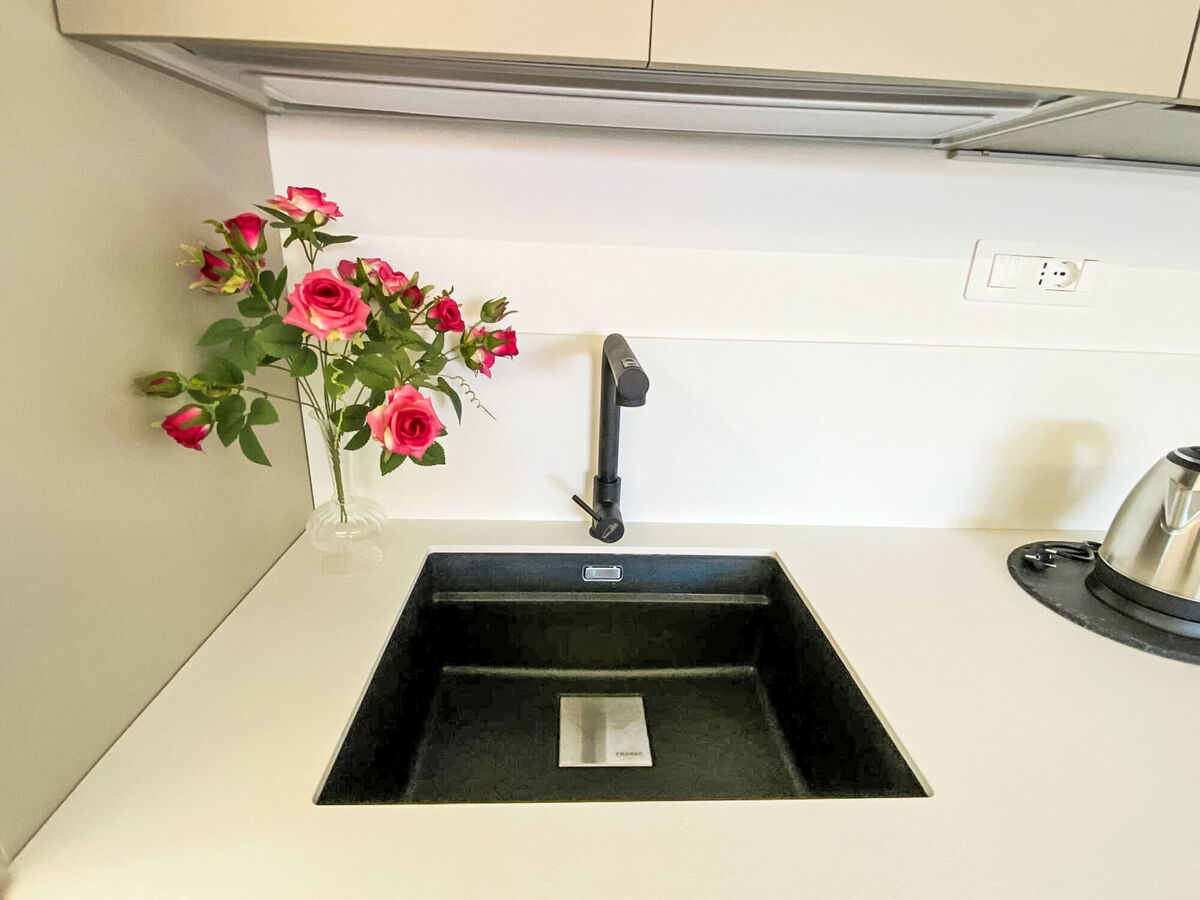 Cuisine ouverte (four, lave-vaisselle, 4 plaques à induction, grille-pain, bouilloire électrique, micro-ondes, cafetière électrique).
