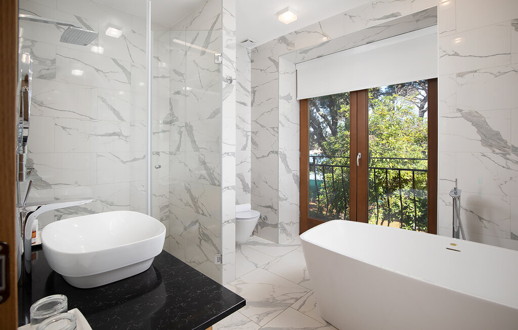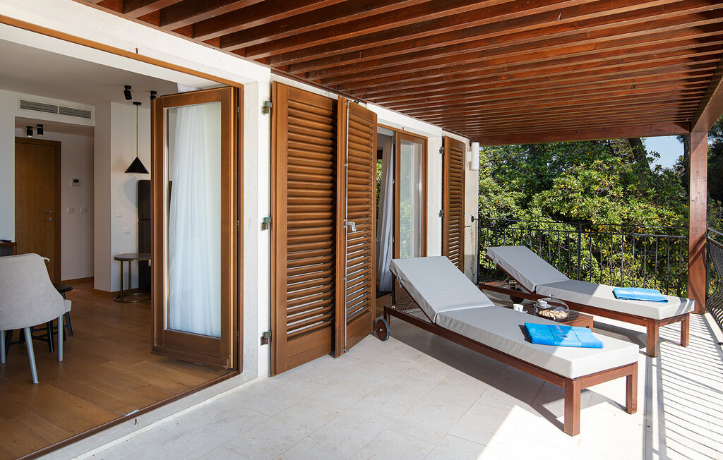 Passez des heures ensoleillées sur la terrasse spacieuse et profitez de la situation calme directement au bord de la mer. Faites quelques brasses dans la piscine et laissez votre regard se perdre dans l'eau cristalline. Reposez-vous sur les confortables chaises longues et profitez de la plage privée pour vous baigner le matin.