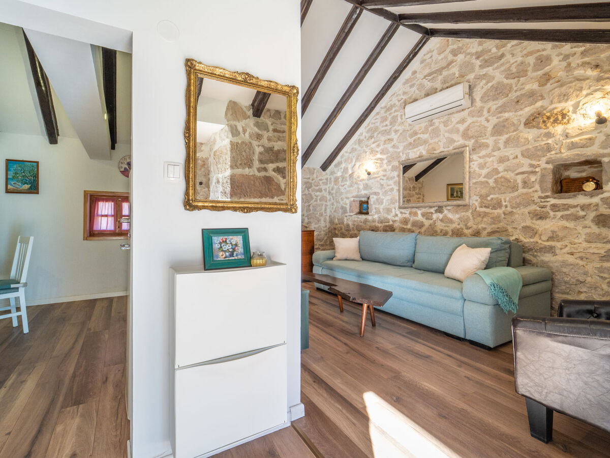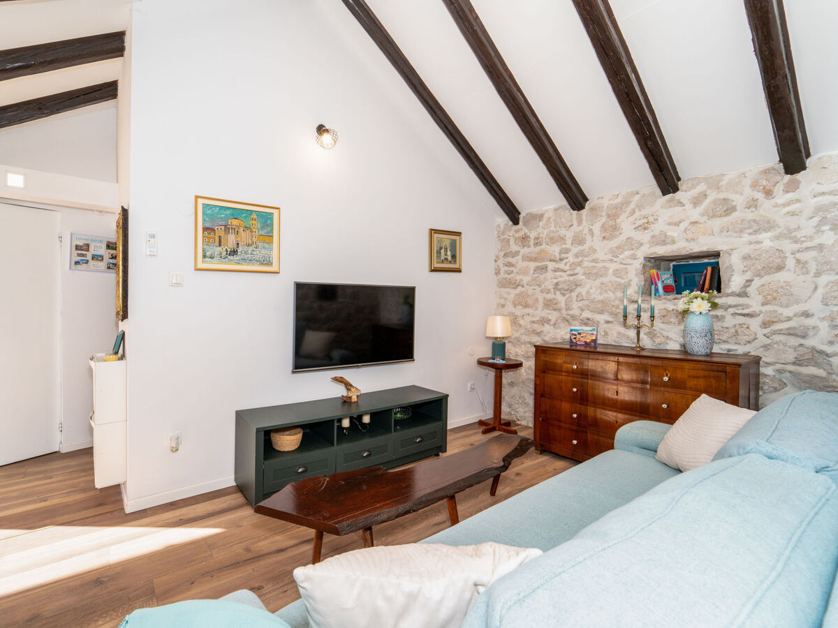 Séjour/chambre à coucher avec 1 divan-lit double (160 cm, longueur 200 cm), TV (satellite) et air-conditionné.