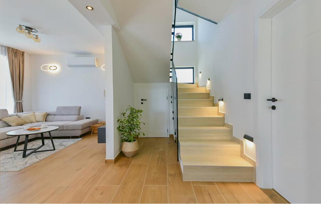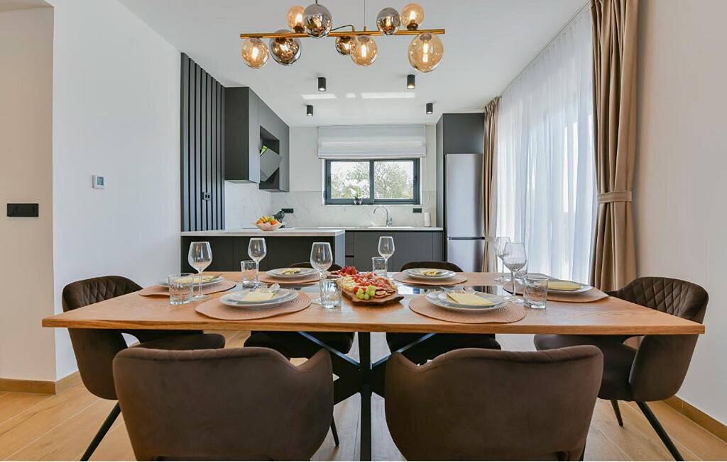 Cette maison séduit par son élégance sobre et son confort moderne. Détendez-vous avec un café parfumé sur le grand canapé, écoutez votre musique préférée ou regardez les dernières séries en streaming. Dans la cuisine, vous pourrez concocter ensemble de délicieux plats que vous servirez avec un verre de vin.