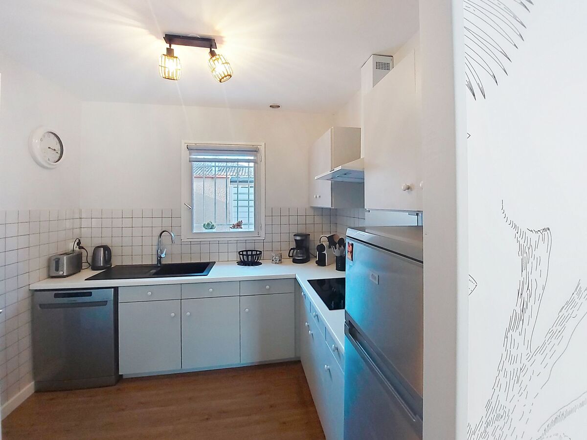 Cuisine (four, lave-vaisselle, 4 plaques vitrocéramiques, grille-pain, bouilloire électrique, micro-ondes, cafetière électrique).