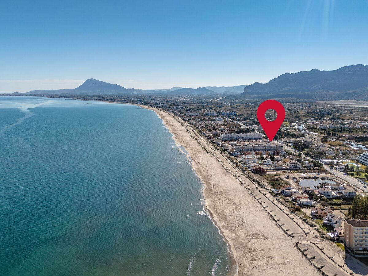 Dans le quartier de Les Marines, en bordure de la localité, à 13 km du centre de Denia, situation tranquille, ensoleillée, à 100 m de la mer, à 100 m de la plage.
