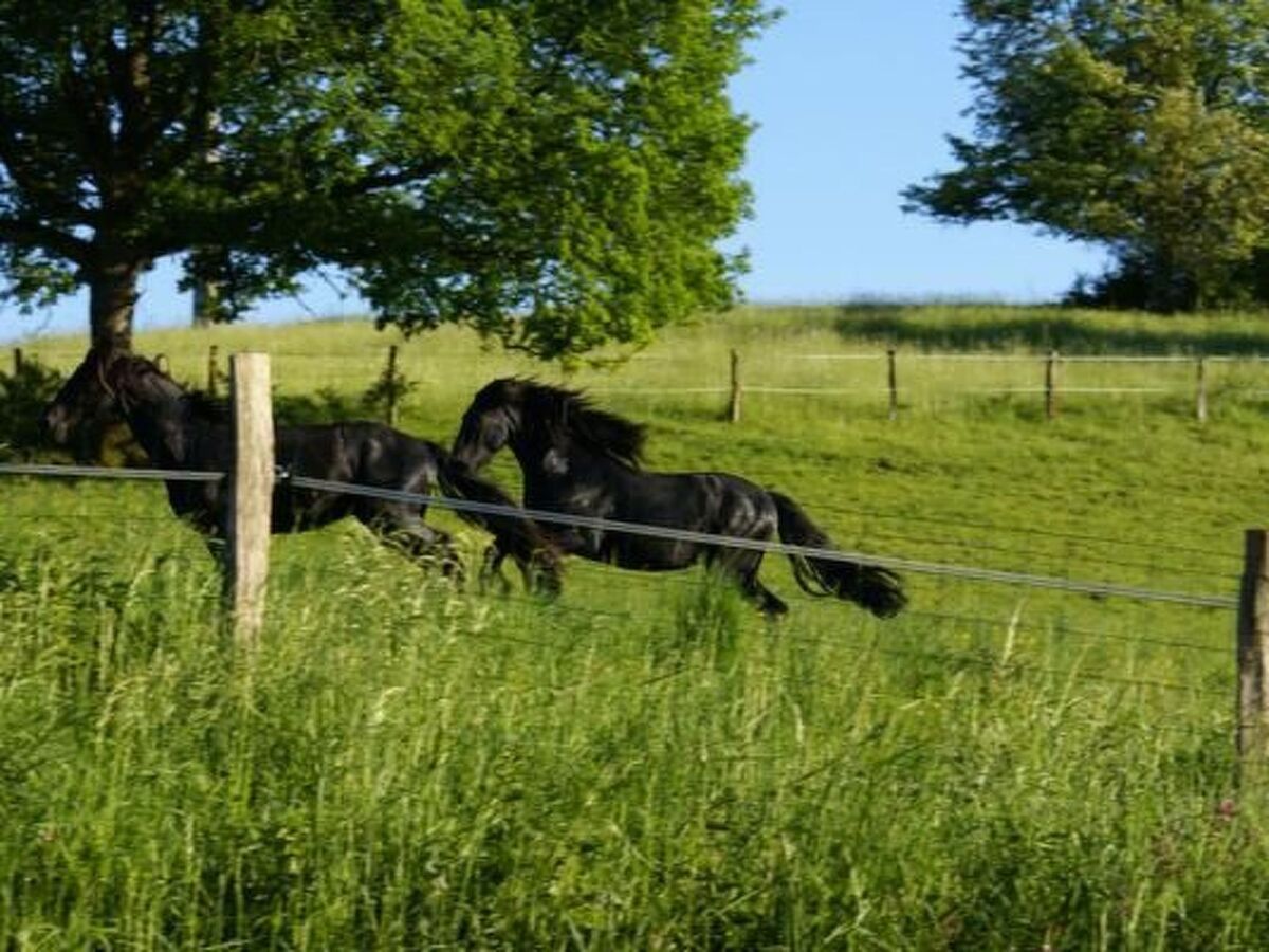 Vous avez une vue magnifique sur les environs et sur les chevaux de race frison des propriétaires.