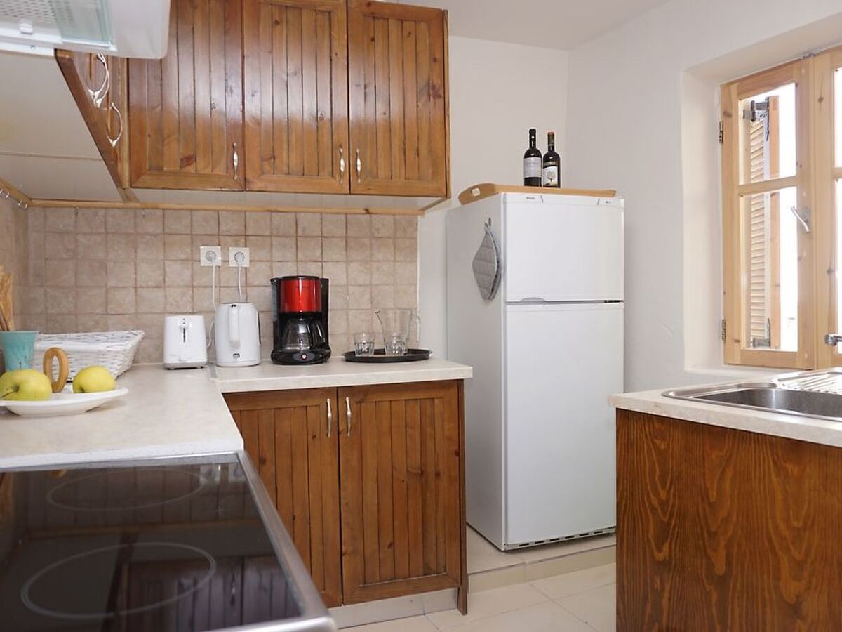 90 m² holiday home has a fully equipped kitchen with an oven, a large fridge with freezer, an electric cooker with oven, a toaster, a kettle and a coffee machine.
