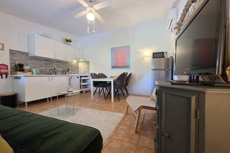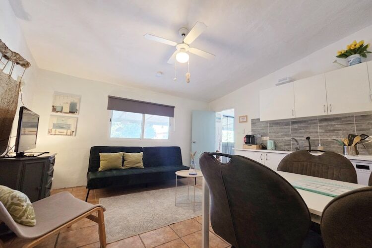 La casita dispose d'une grande chambre avec un lit double et un lit superposé robuste. Idéale pour un couple ou une famille avec deux enfants. Un canapé-lit est également disponible dans le salon. Les deux pièces sont climatisées (chauffage et refroidissement). La cuisine est entièrement équipée, avec notamment une petite friteuse à air chaud.