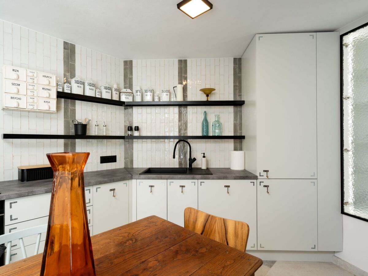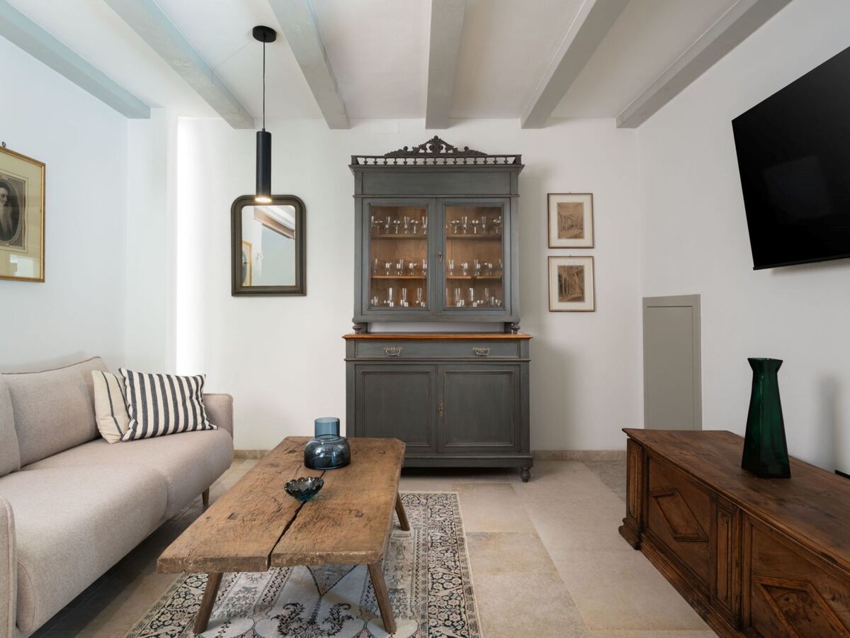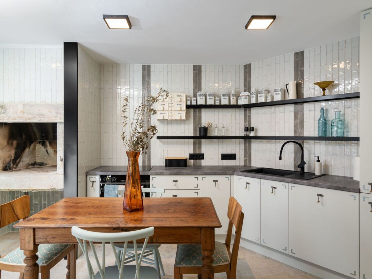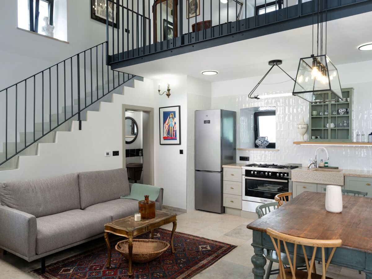 Aménagement très de bon goût et de style: séjour/salle à manger avec cheminée (uniquement à titre de décoration), coin-cuisine et TV (satellite) (écran plat).