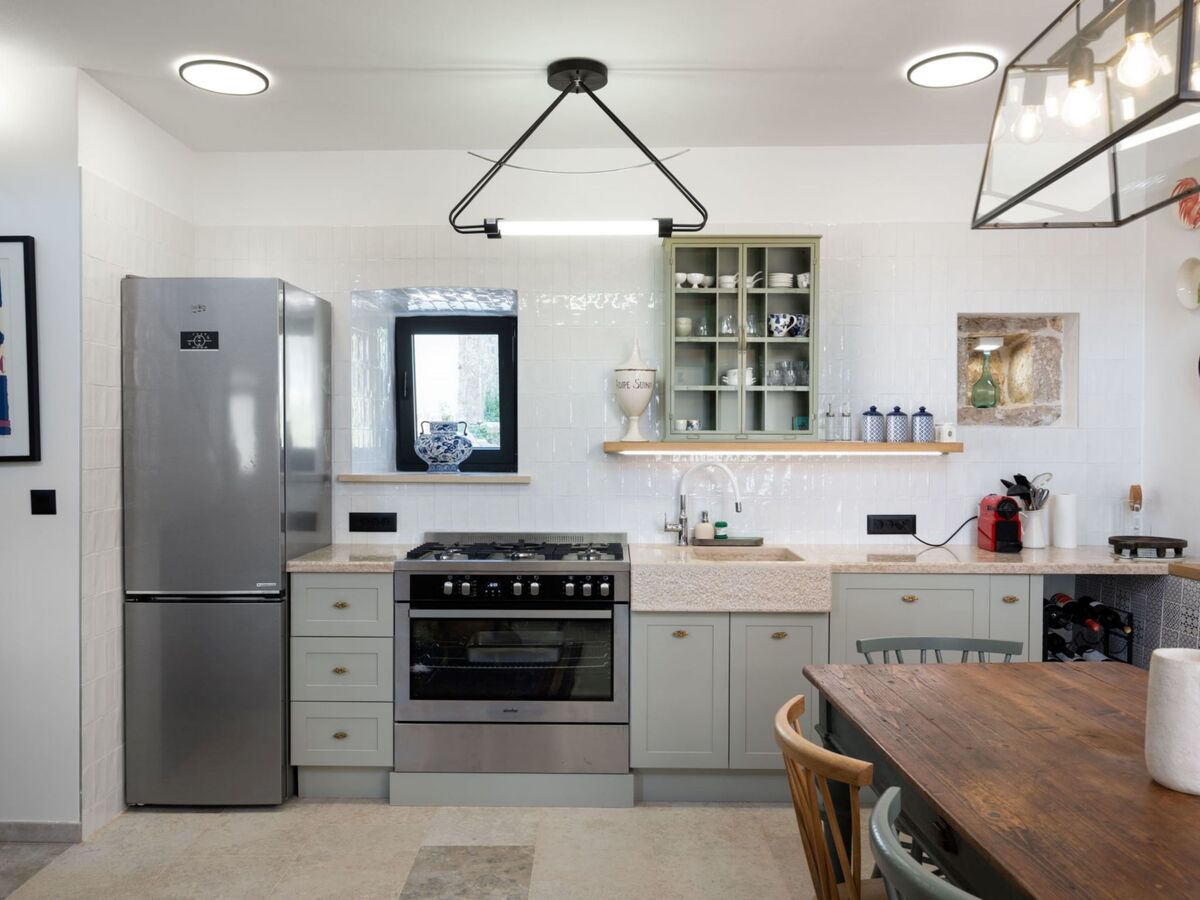 Cuisine ouverte (four, lave-vaisselle, 4 feux, congélateur, cafetière électrique).