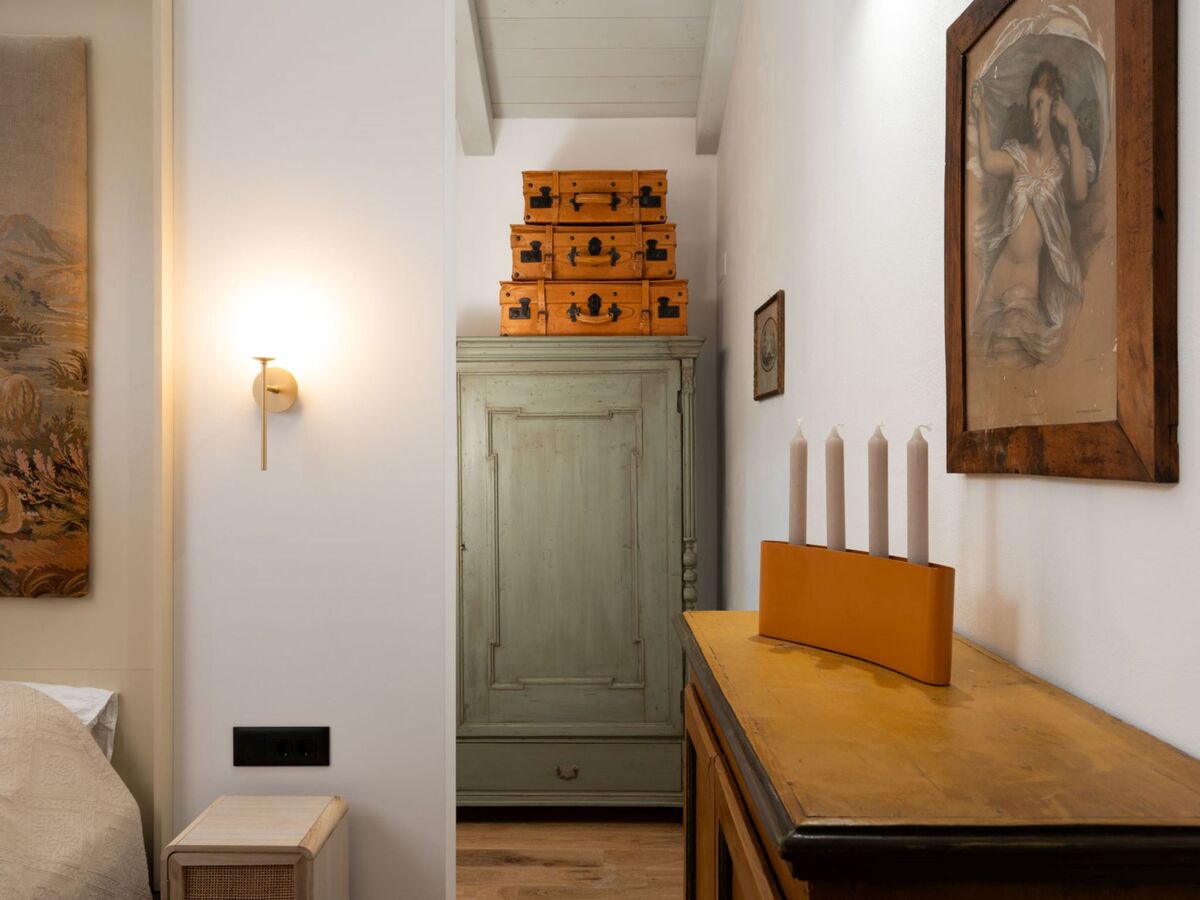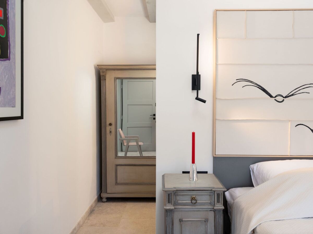 1 chambre avec 1 grand-lit (180 cm, longueur 200 cm), douche/WC.
