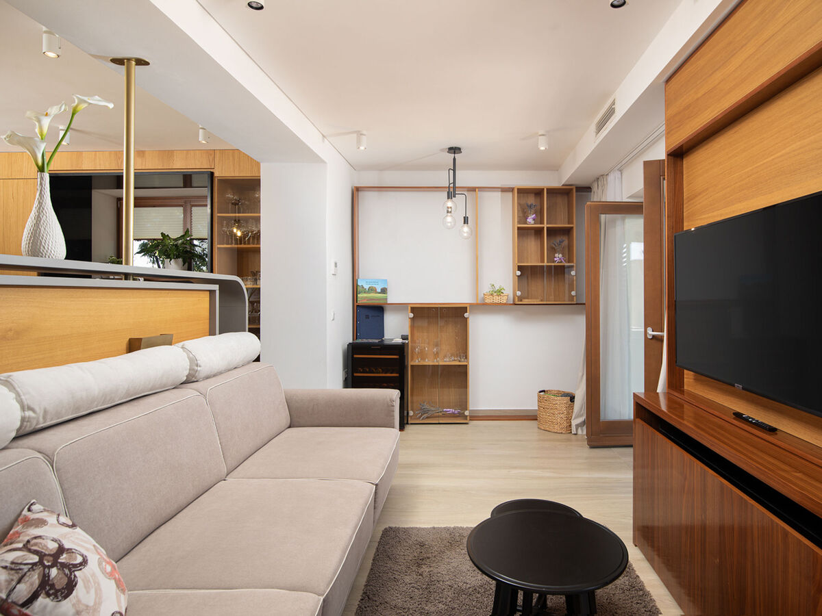 Aménagement confortable et moderne: séjour/salle à manger avec TV (satellite) (écran plat), air-conditionné.