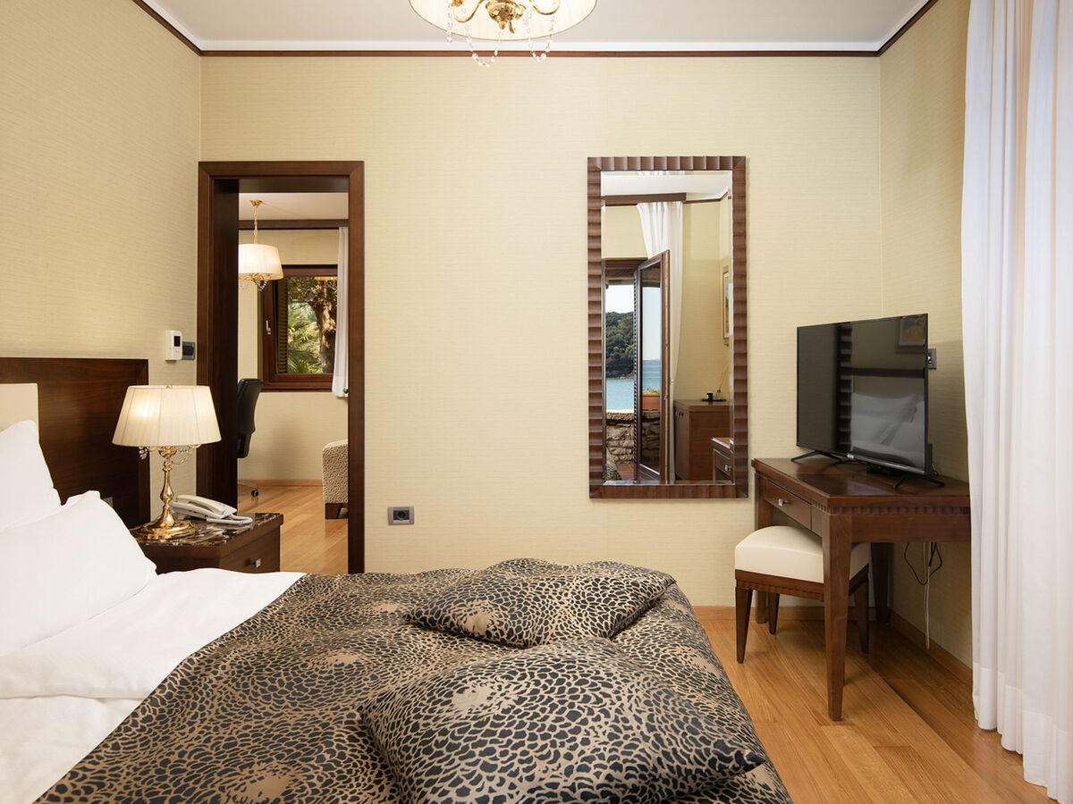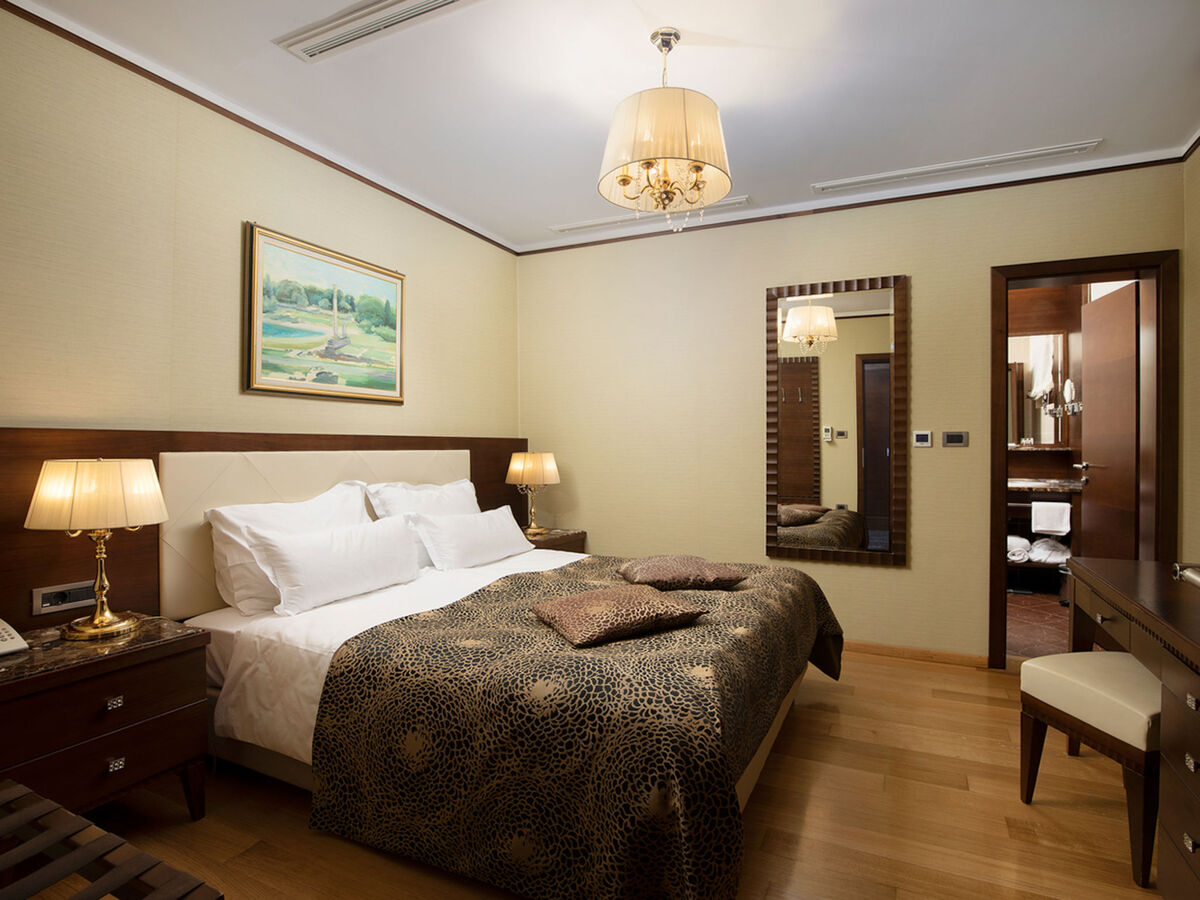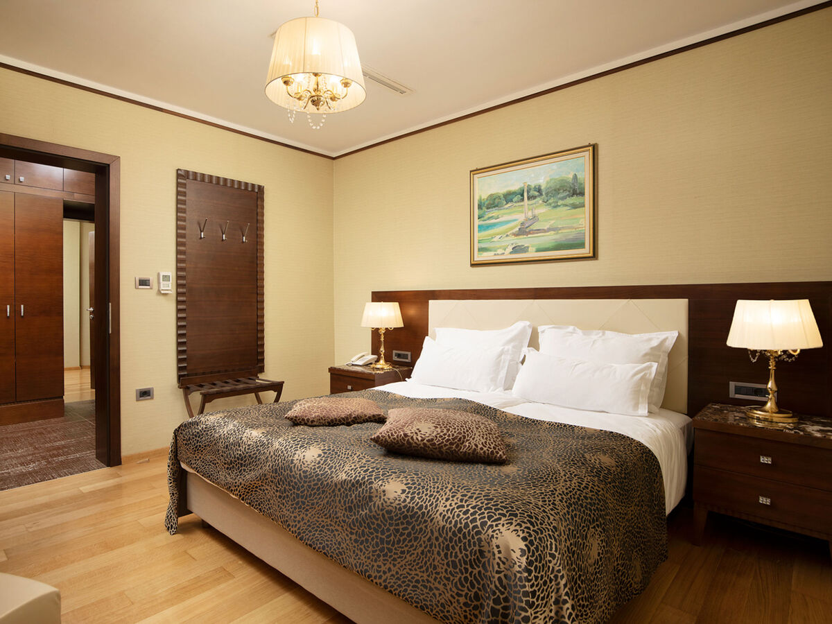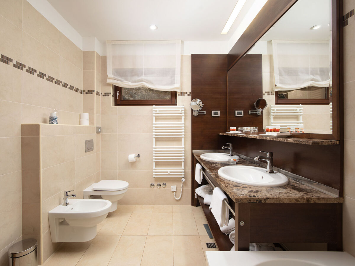 1 chambre avec 1 grand-lit (180 cm, longueur 200 cm), bidet, bain/douche/WC et TV (satellite) (écran plat).