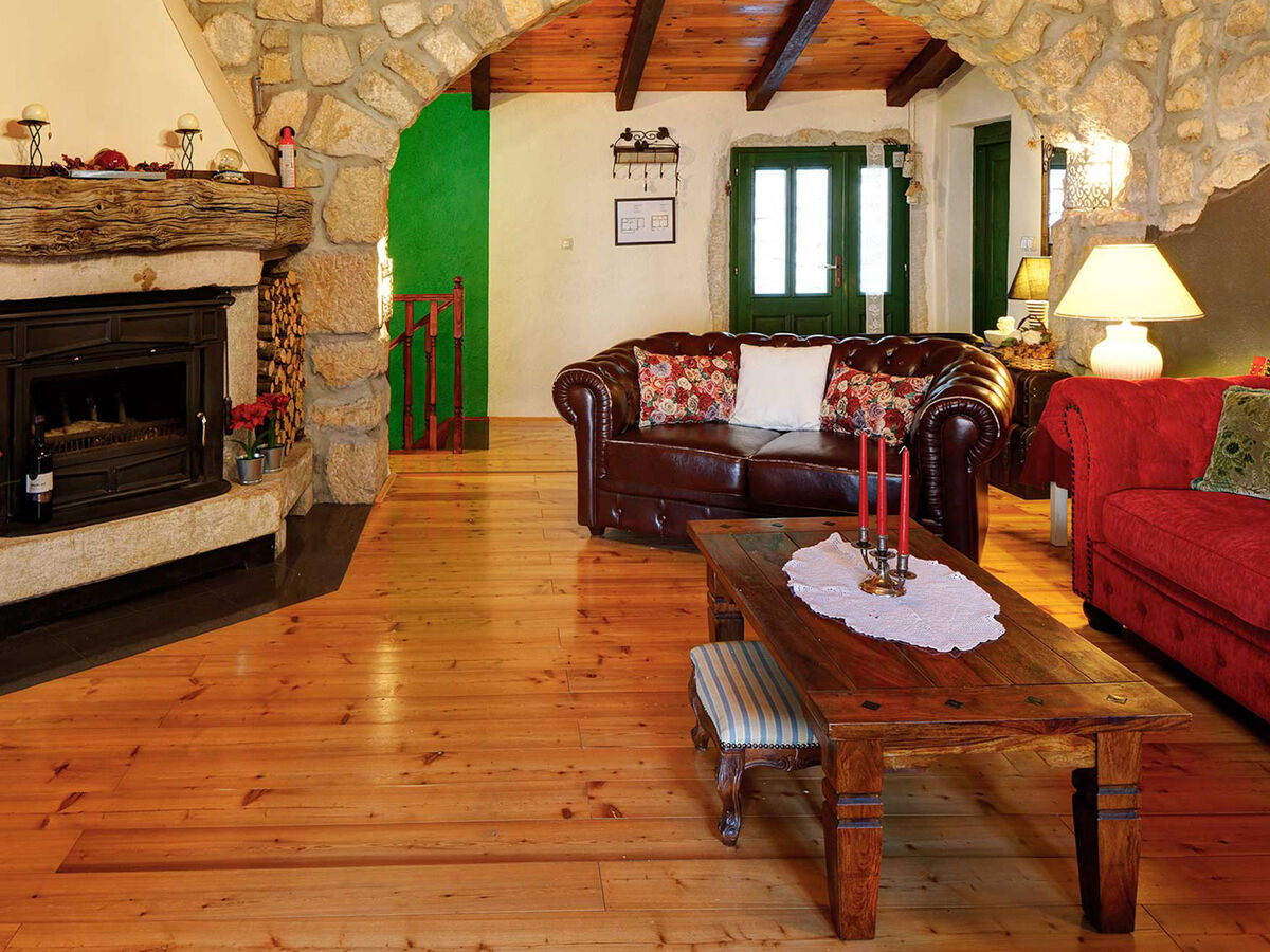 Séjour avec cheminée, TV (satellite) et air-conditionné.