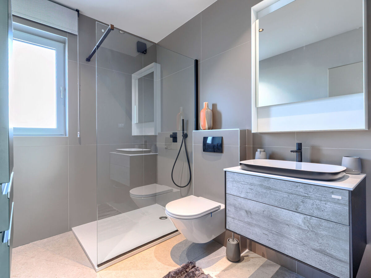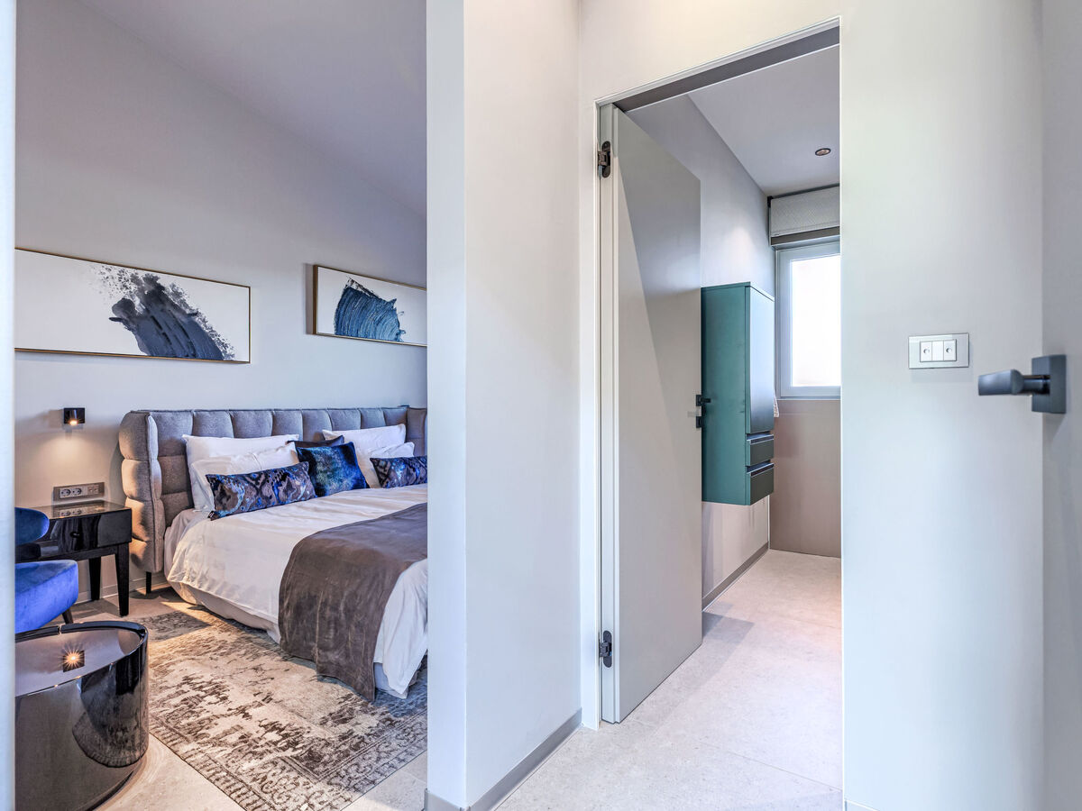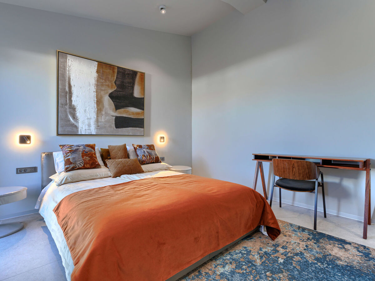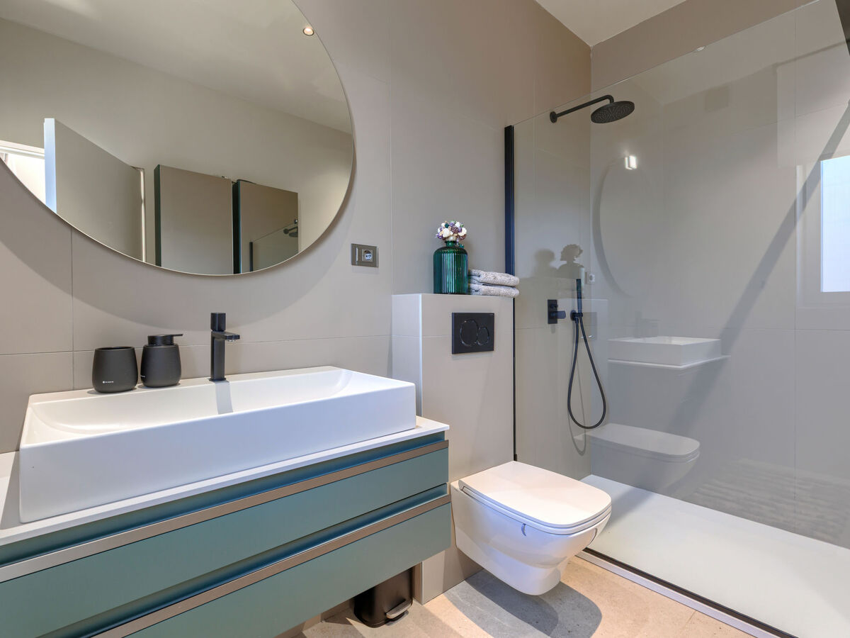 1 chambre avec 1 grand-lit (180 cm, longueur 200 cm), douche/WC.