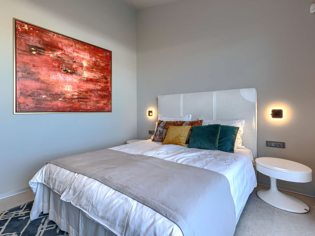 3 chambres, chaque chambre avec: 1 grand-lit (180 cm, longueur 200 cm), douche/WC et TV (satellite) (écran plat).