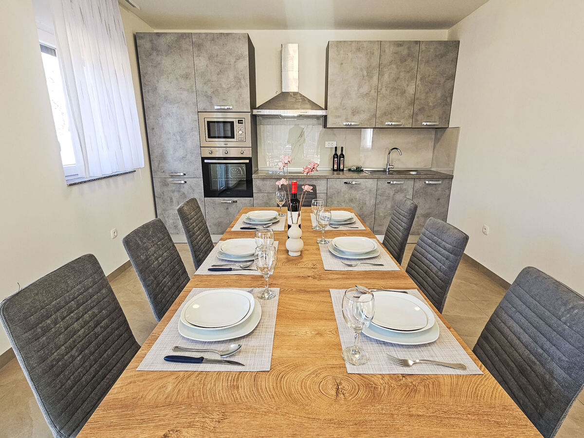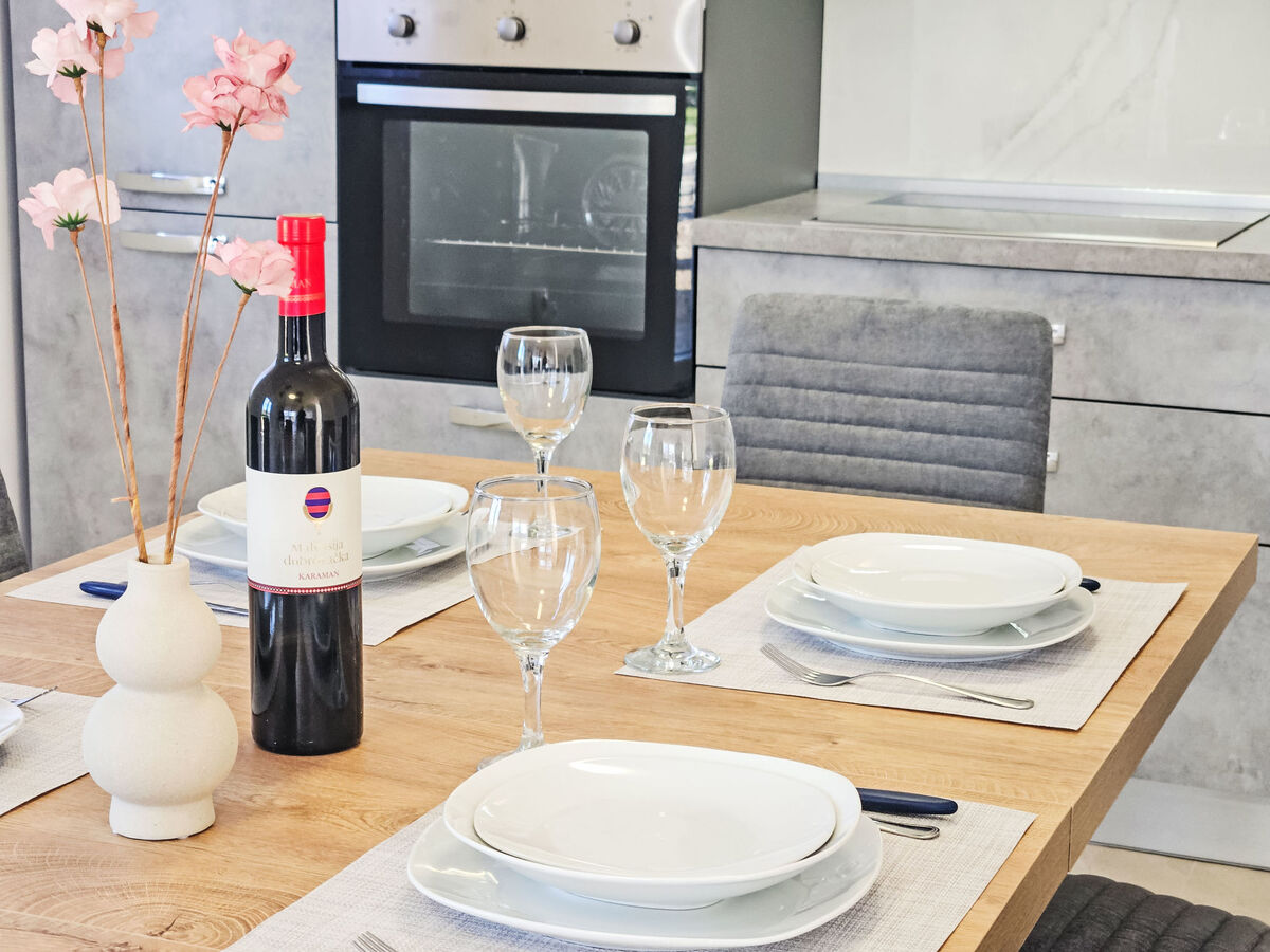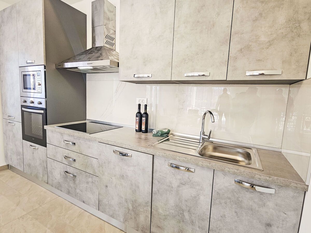 Cuisine ouverte (four, lave-vaisselle, 4 plaques vitrocéramiques, bouilloire électrique, micro-ondes, congélateur, cafetière électrique).