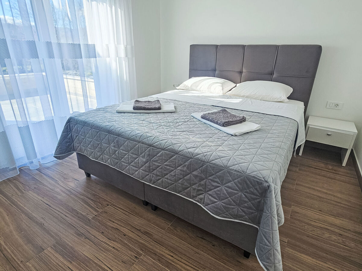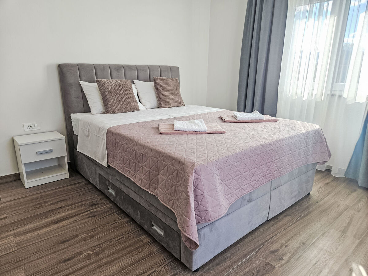 1 chambre avec 1 grand-lit (160 cm, longueur 200 cm), TV (satellite) (écran plat), air-conditionné.