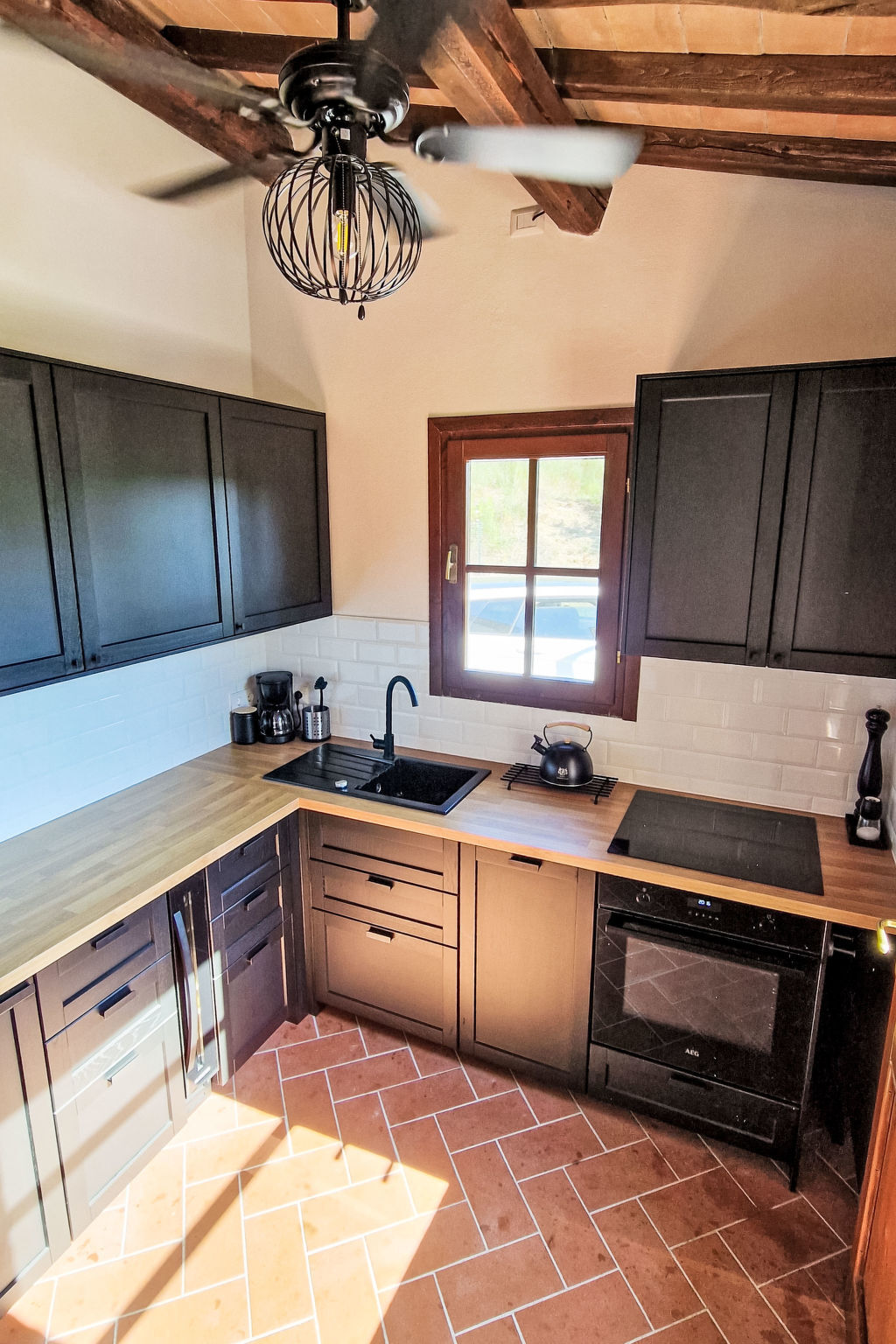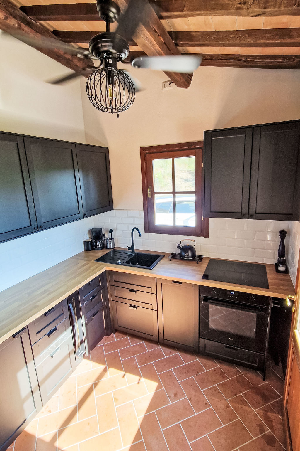 Cuisine (four, lave-vaisselle, 4 plaques à induction, grille-pain, bouilloire électrique, congélateur, cafetière électrique).