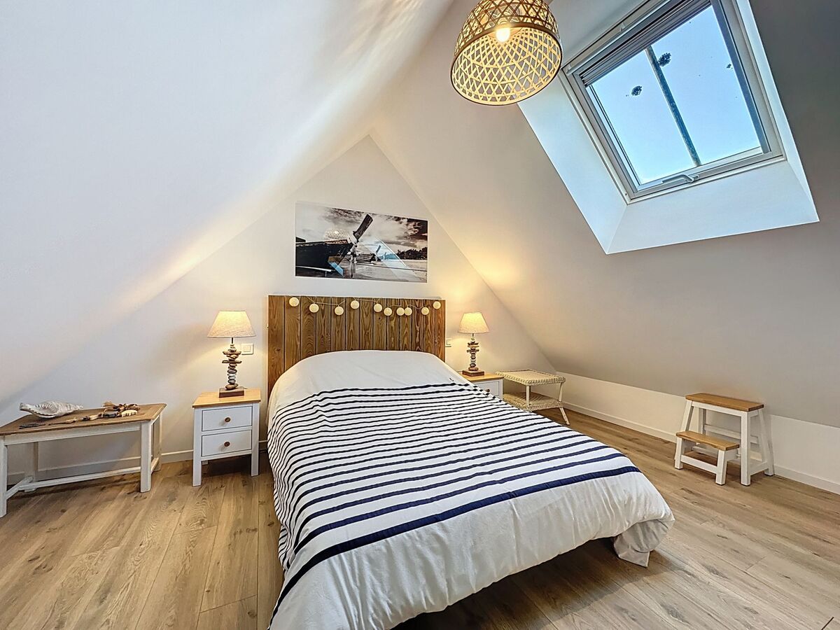 2ème étage: (escalier raide) 1 grande chambre, mansardée avec 1 grand-lit (1 x 160 cm, longueur 200 cm).