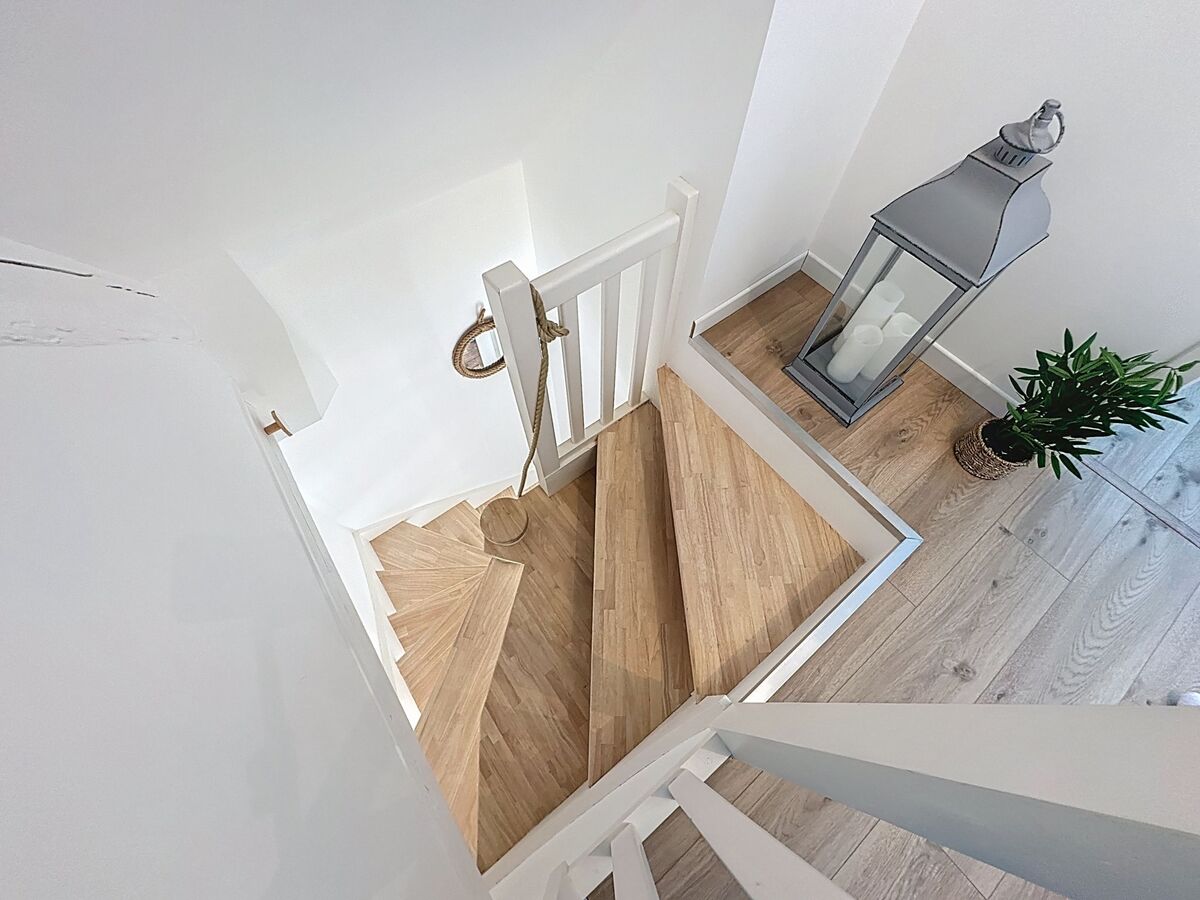 À l'étage supérieur: (escalier raide) 2 chambres, chaque chambre avec: 1 grand-lit (1 x 140 cm, longueur 190 cm).