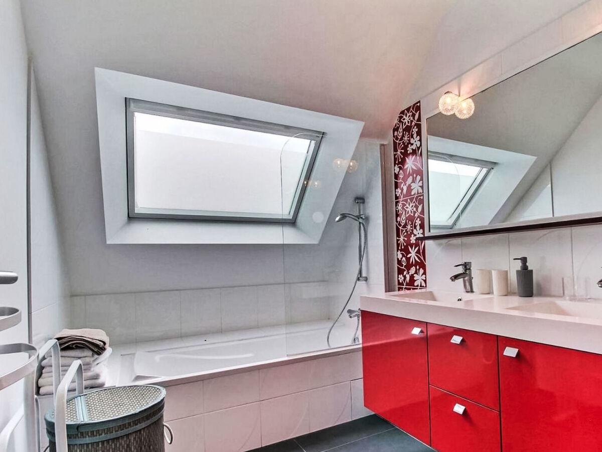 Sortie sur la terrasse, orientée nord et orientée ouest.