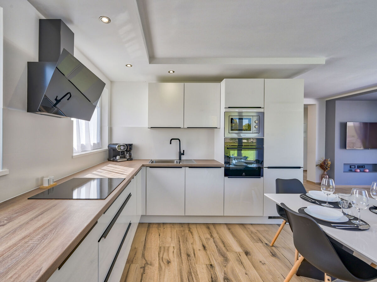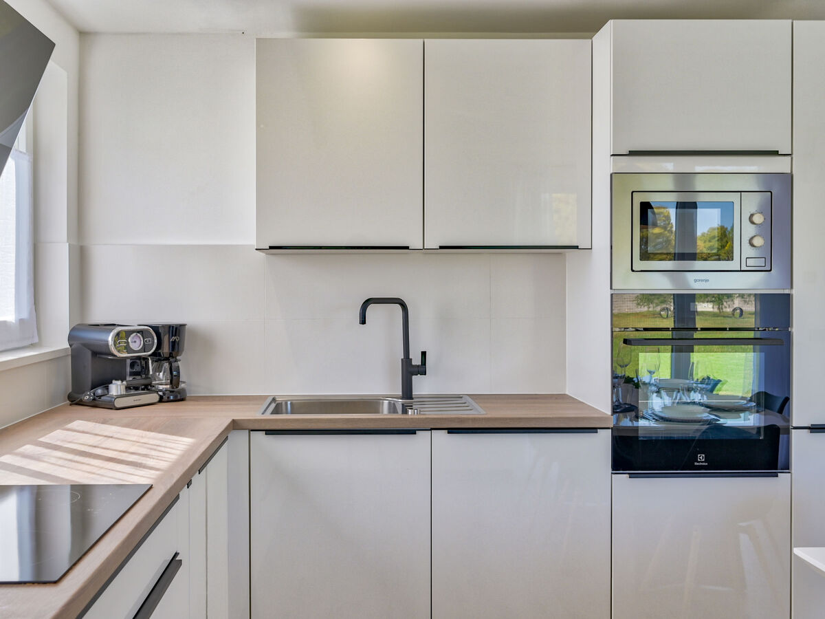 Cuisine ouverte (four, lave-vaisselle, 4 plaques vitrocéramiques, grille-pain, bouilloire électrique, micro-ondes, congélateur, cafetière électrique).