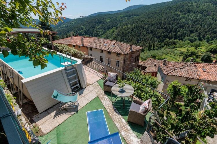 Ce gîte est une charmante maison en pierre située dans les ruelles étroites de l'ancien hameau de Ruota, à seulement 14 km au sud de Lucques, dans la pittoresque région de Compitese. Accessible directement depuis la rue, ce gîte élégant et pratique offre un aménagement chaleureux propice à la détente et au confort. L'étage supérieur abrite une chambre principale donnant sur un chemin extérieur menant à un environnement paisible. À l'arrière de la maison, perchée au sommet de la colline, vous trouverez une piscine hors-sol, un charmant grenier à foin équipé d'une table à manger, d'une kitchenette simple et d'une salle de bain, le tout offrant un cadre idéal pour profiter d'une vue imprenable.