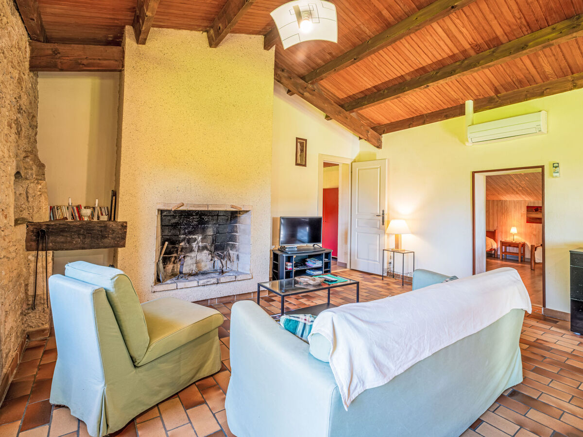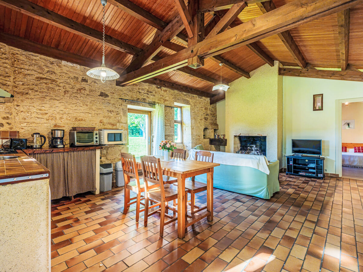 Aménagement confortable et agréable: séjour/salle à manger avec cheminée et TV (écran plat).