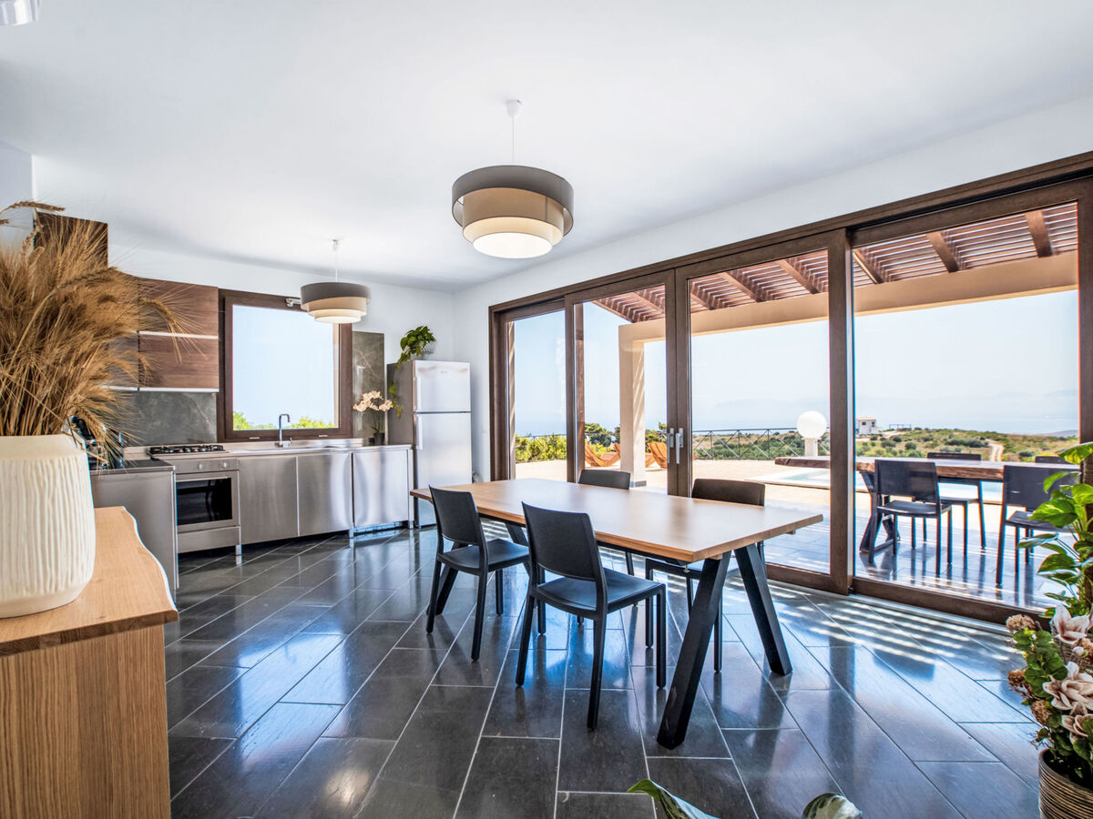 Cuisine (four, lave-vaisselle, Poêle à gaz, 5 feux, grille-pain, bouilloire électrique, micro-ondes, cafetière électrique) avec table pour les repas, air-conditionné et chauffage à air chaud.