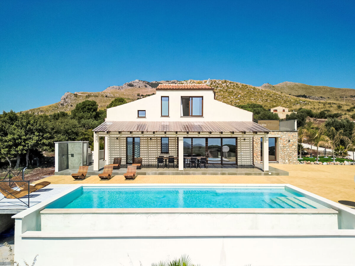 À 7 km du centre de Scopello, à 12 km du centre de Castellammare del Golfo, situation tranquille, ensoleillée sur une colline, à 5 km de la mer, à 5 km de la plage.