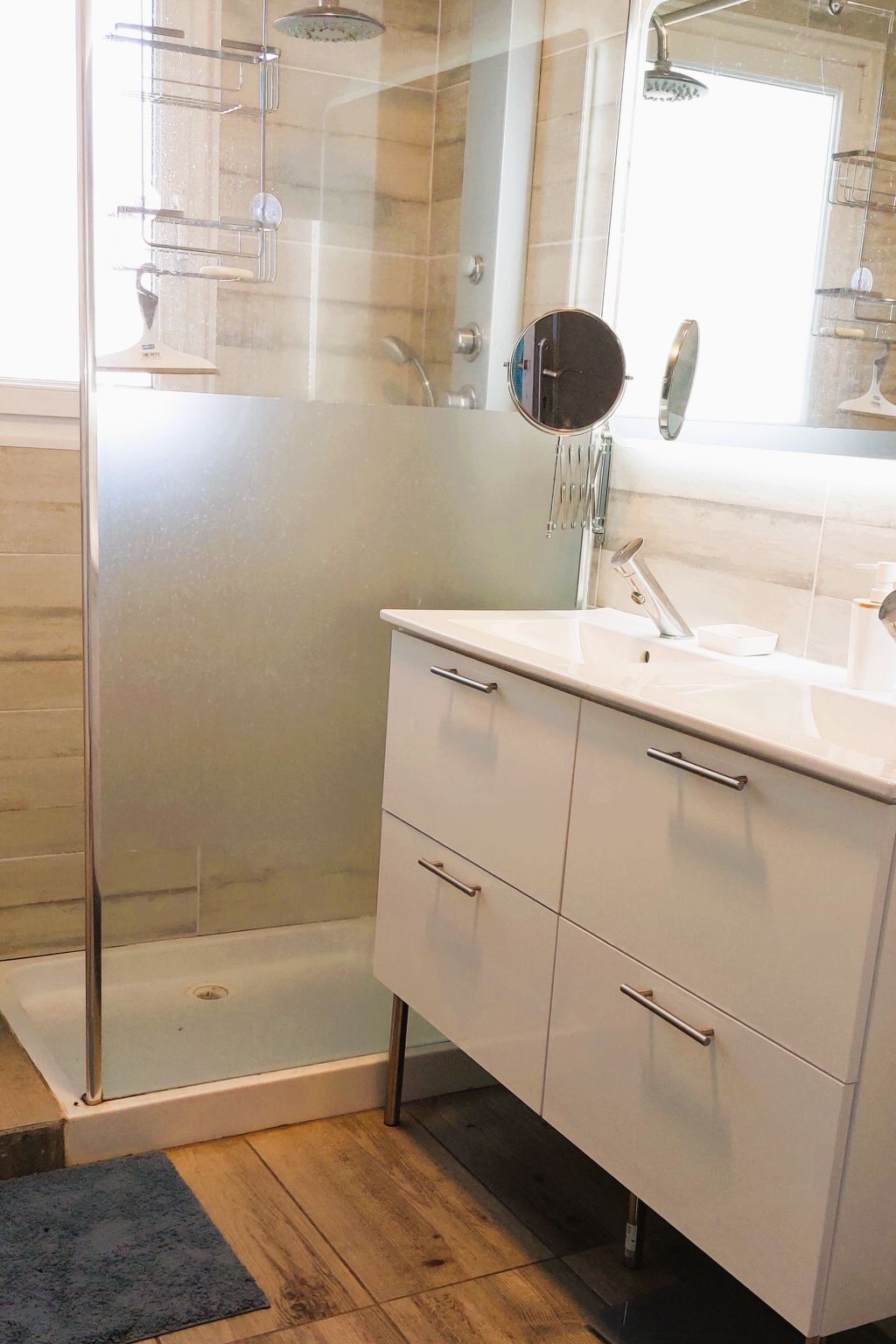 Douche, WC séparé.