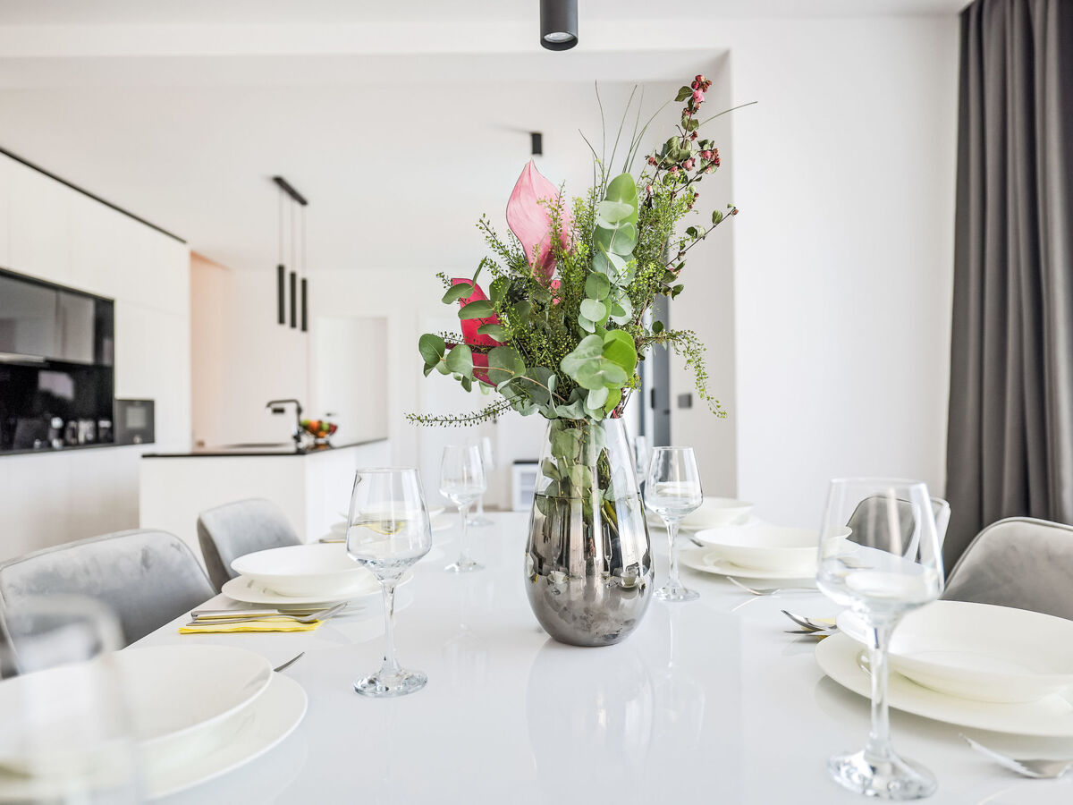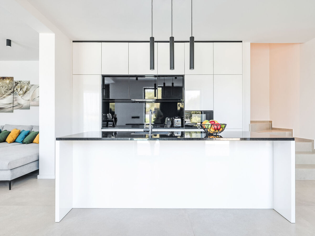 Cuisine ouverte (lave-vaisselle, 4 plaques à induction, bouilloire électrique, micro-ondes, congélateur, cafetière électrique).