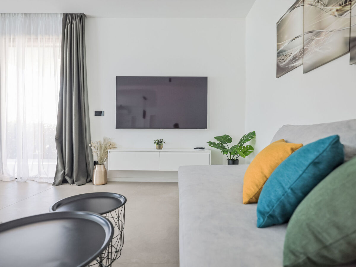 Séjour/salle à manger avec TV (satellite) (écran plat), air-conditionné.