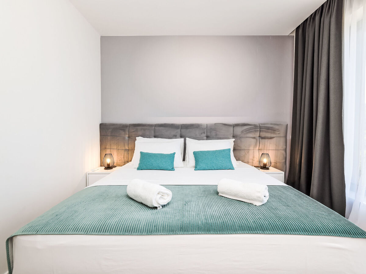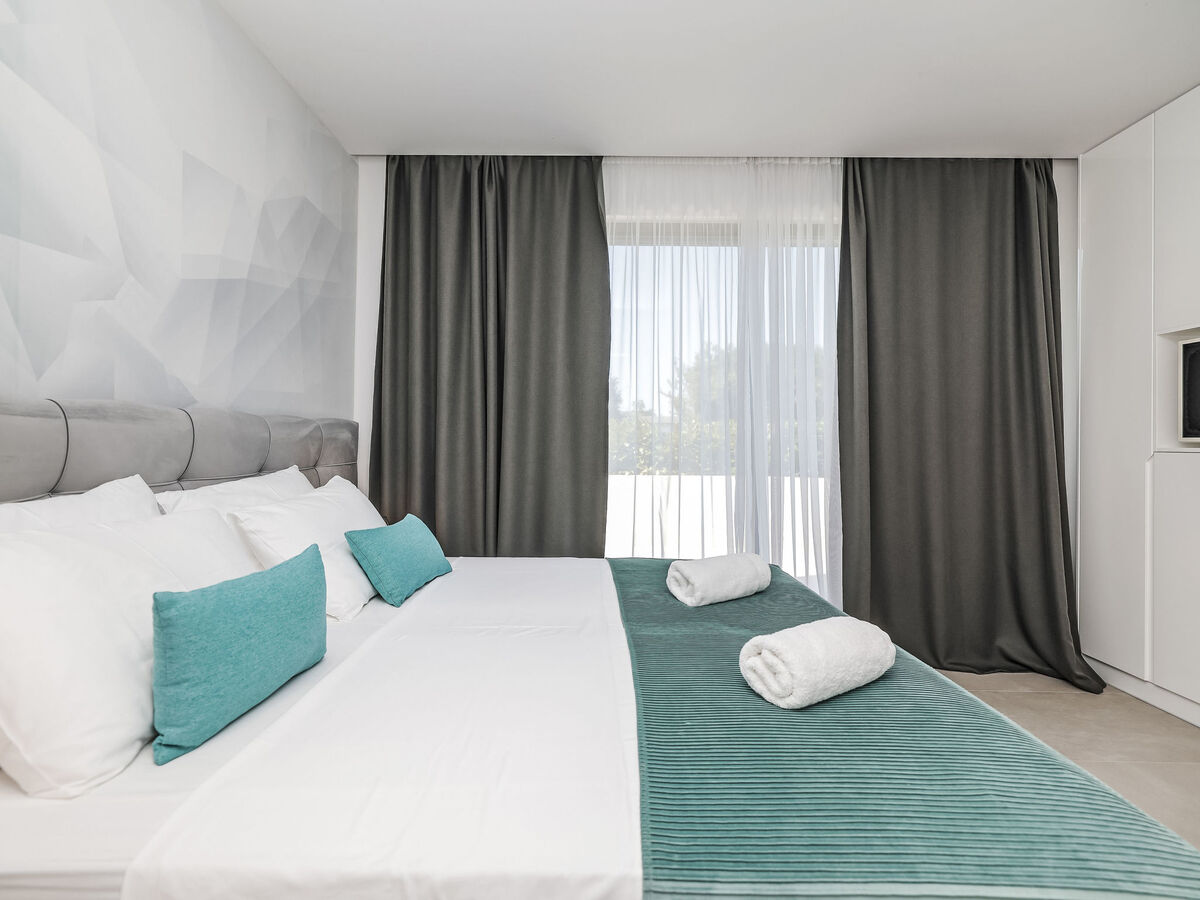 1 chambre avec 1 grand-lit (160 cm, longueur 200 cm), douche/WC et TV (satellite) (écran plat), air-conditionné.
